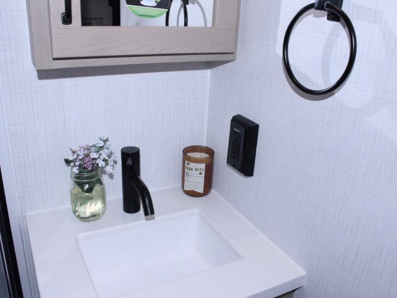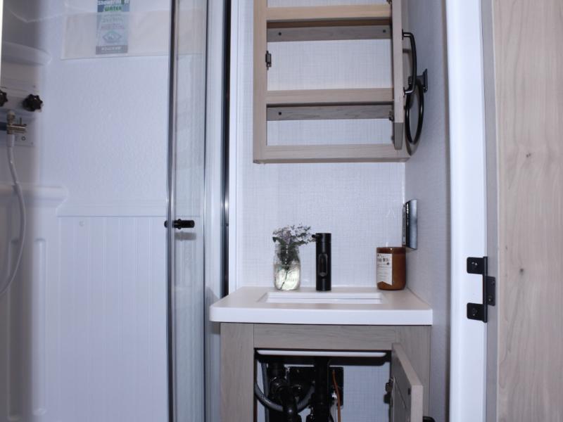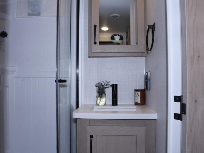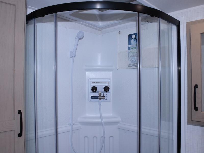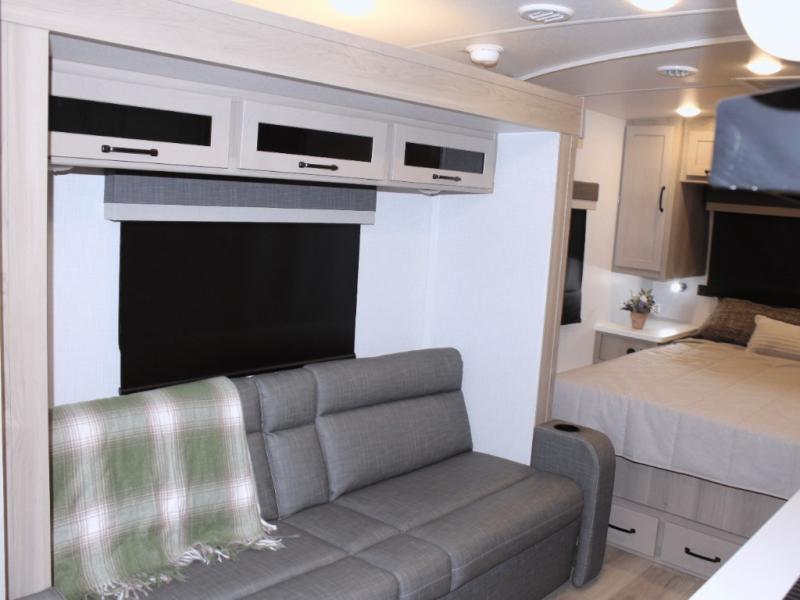 The full bath includes a radius shower with skylight, so you’ll never need to rely on campground facilities again. And when it’s time to kick back, enjoy a movie on the 32" TV in the main living area.