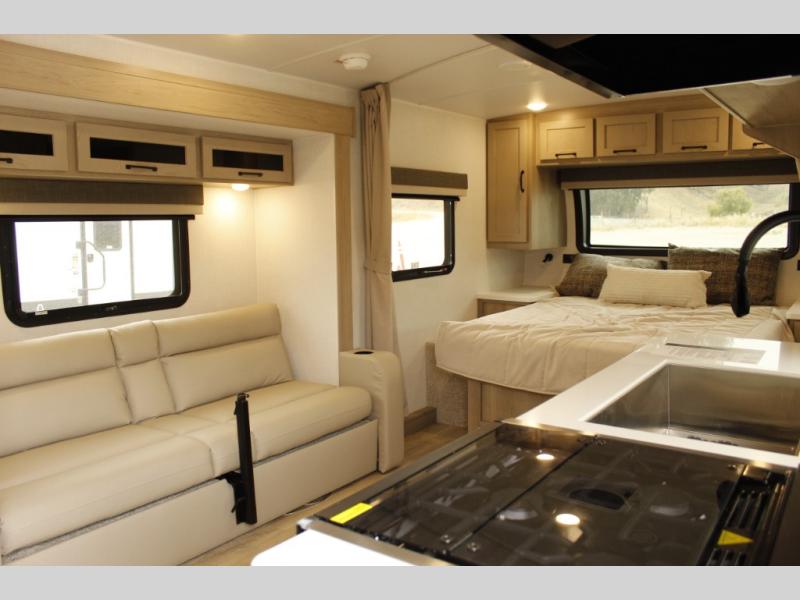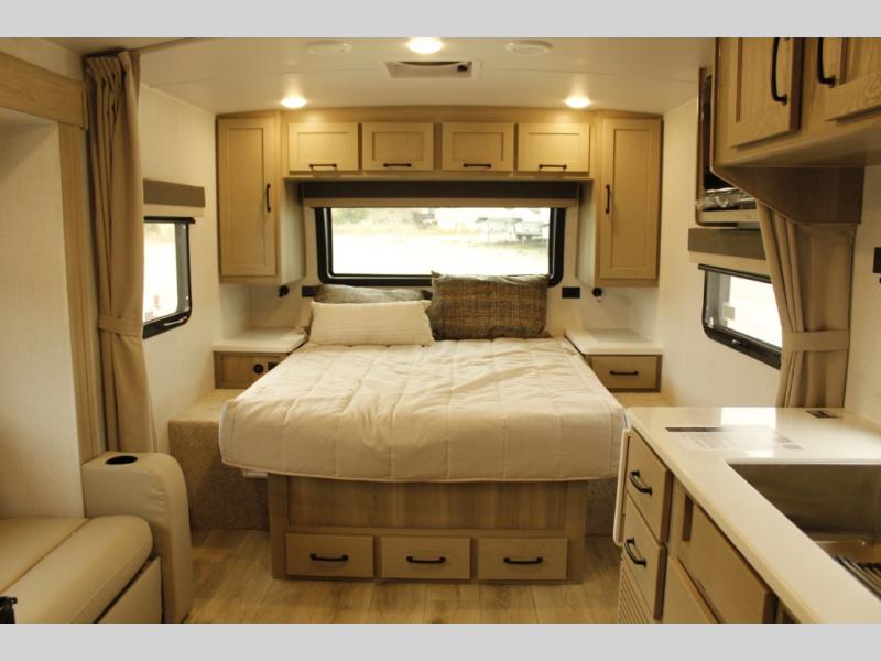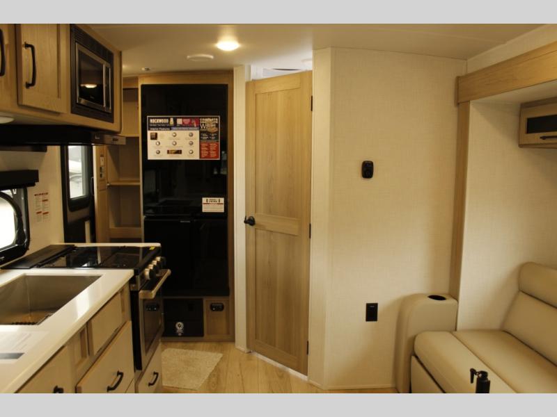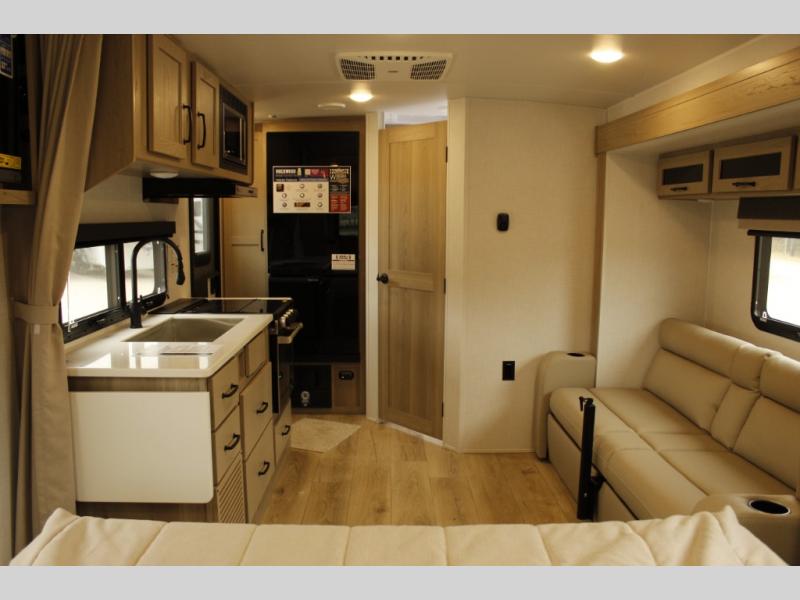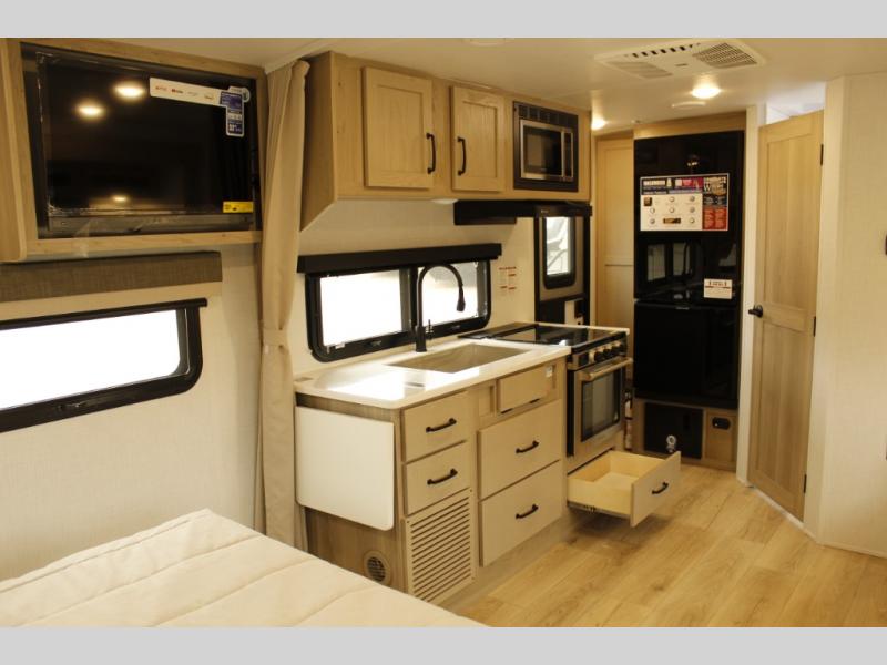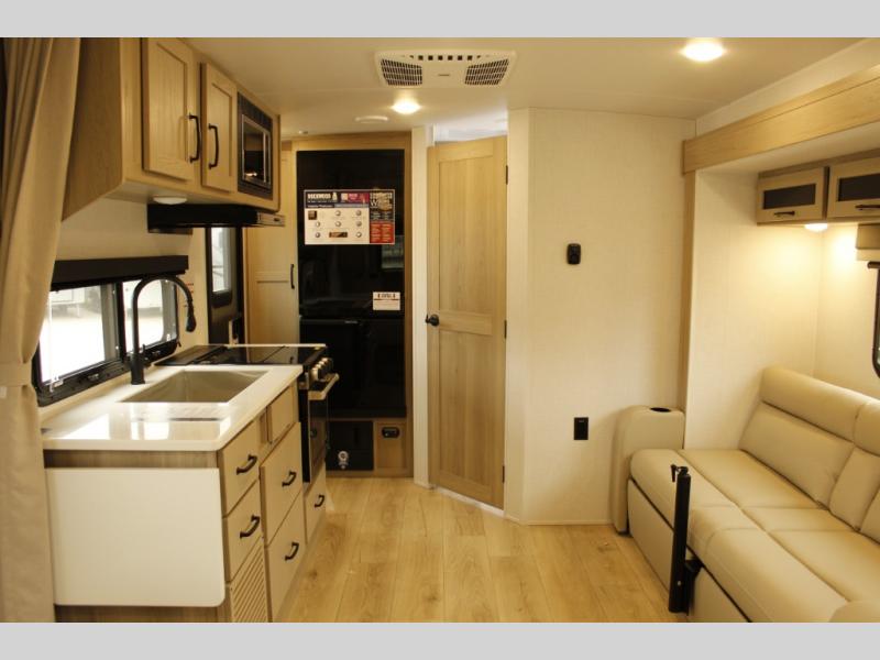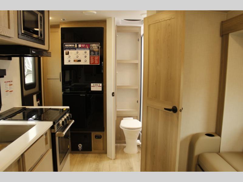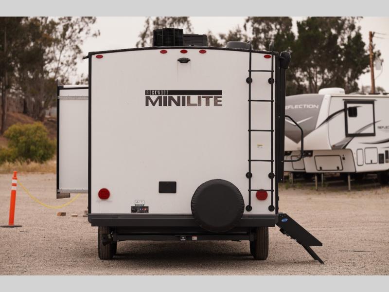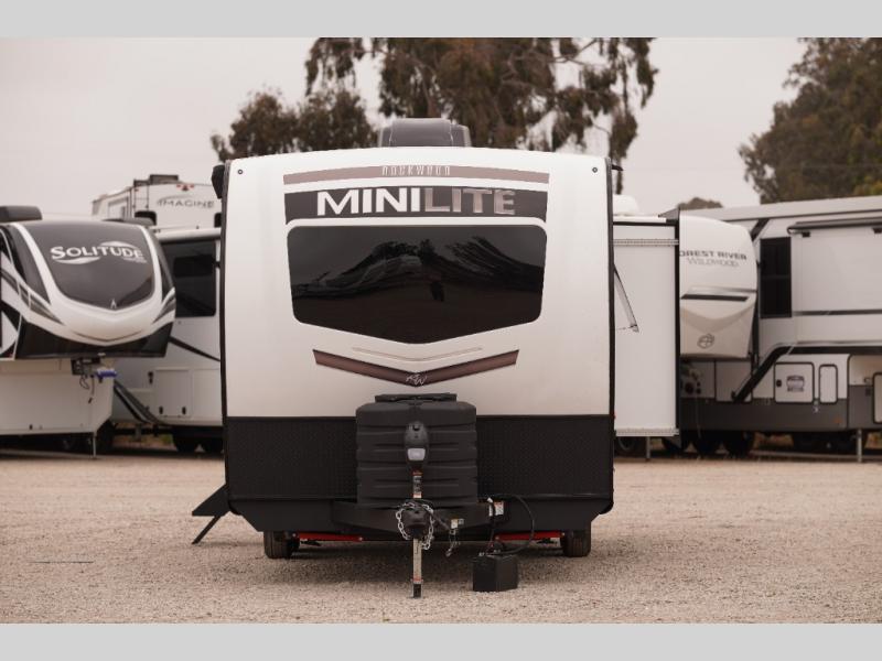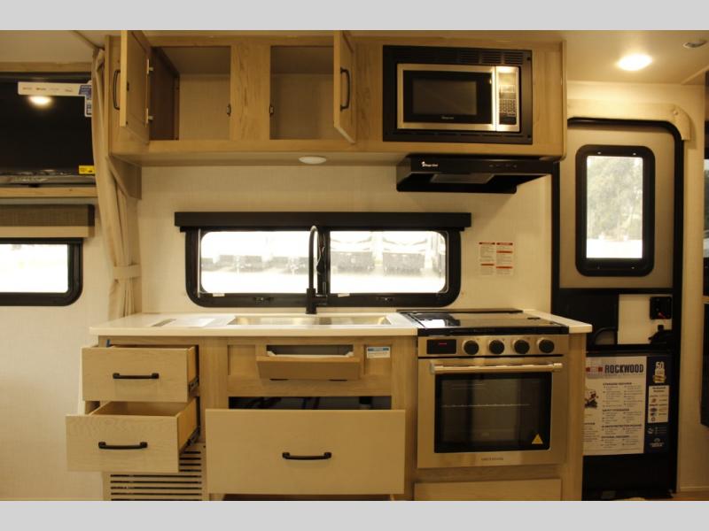 Each Rockwood Mini Lite travel trailer by Forest River is constructed with a fully laminated one-piece walkable roof, sleek frameless windows, and a six-sided full aluminum frame for strength and durability. The 12V thermostatically controlled heated tanks, plus radiant foil in the underbelly and slide out floors will allow you to camp well into the colder months, and the 200W roof solar panel will be perfect for a little off-gridding. Each model includes solid surface kitchen countertops, solid wood cabinet doors, night roller shades, plus many more interior features. Having an AIR 360+ omnidirectional antenna with WiFi prep on board gives you the option to get some work done if it's needed, and the power tongue jack provides hassle-free set up, so you can enjoy more time relaxing!