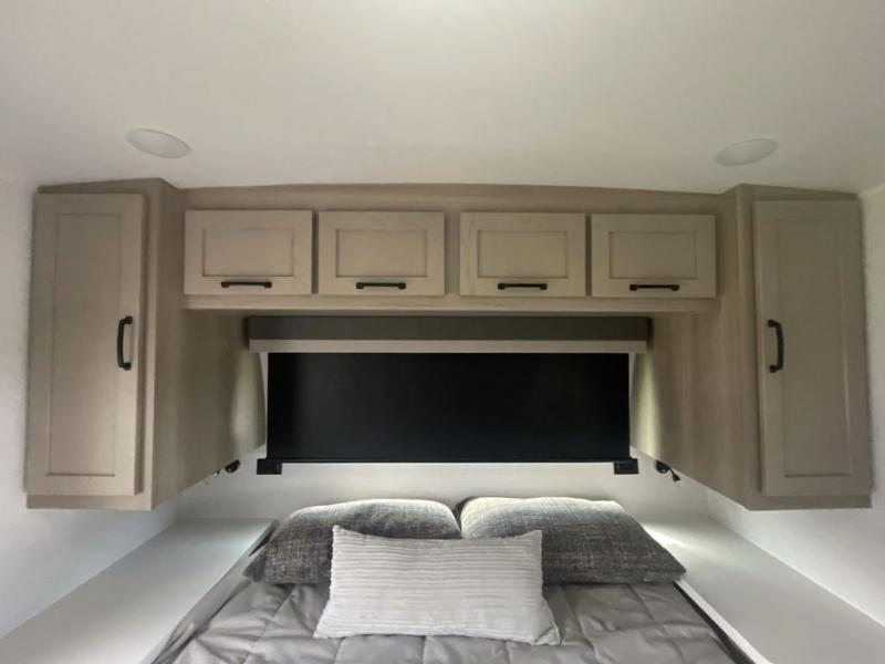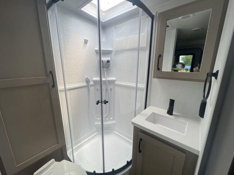 Each Rockwood Mini Lite travel trailer by Forest River is constructed with a fully laminated one-piece walkable roof, sleek frameless windows, and a six-sided full aluminum frame for strength and durability. The 12V thermostatically controlled heated tanks, plus radiant foil in the underbelly and slide out floors will allow you to camp well into the colder months, and the 200W roof solar panel will be perfect for a little off-gridding. Each model includes solid surface kitchen countertops, solid wood cabinet doors, night roller shades, plus many more interior features. Having an AIR 360+ omnidirectional antenna with WiFi prep on board gives you the option to get some work done if it's needed, and the power tongue jack provides hassle-free set up, so you can enjoy more time relaxing!