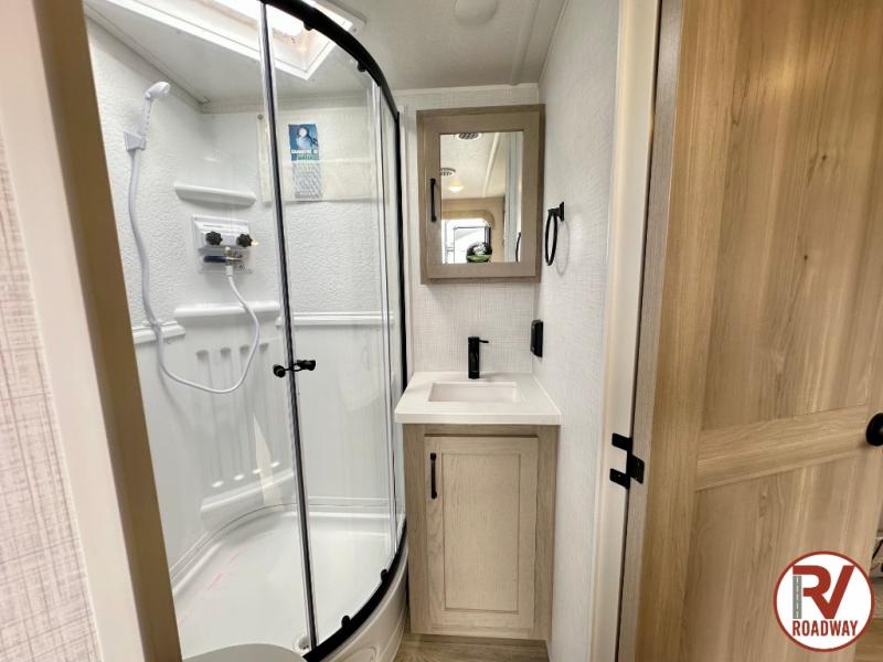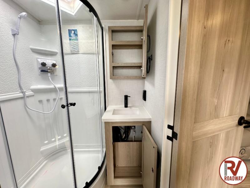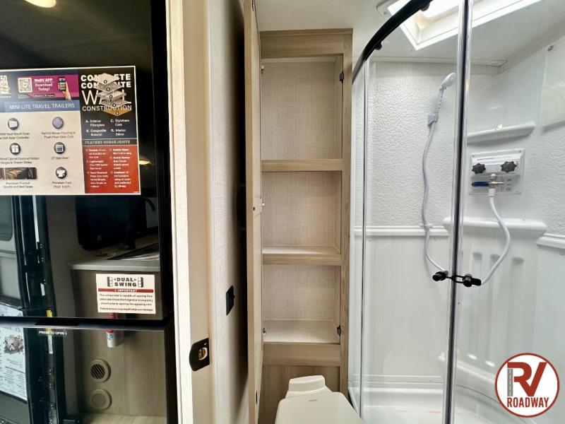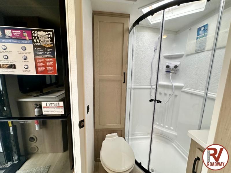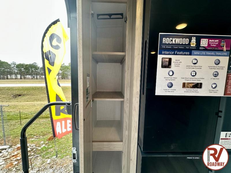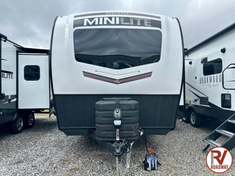 Each Rockwood Mini Lite travel trailer by Forest River is constructed with a fully laminated one-piece walkable roof, sleek frameless windows, and a six-sided full aluminum frame for strength and durability. The 12V thermostatically controlled heated tanks, plus radiant foil in the underbelly and slide out floors will allow you to camp well into the colder months, and the 200W roof solar panel will be perfect for a little off-gridding. Each model includes solid surface kitchen countertops, solid wood cabinet doors, night roller shades, plus many more interior features. Having an AIR 360+ omnidirectional antenna with WiFi prep on board gives you the option to get some work done if it's needed, and the power tongue jack provides hassle-free set up, so you can enjoy more time relaxing!