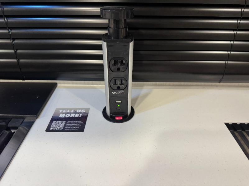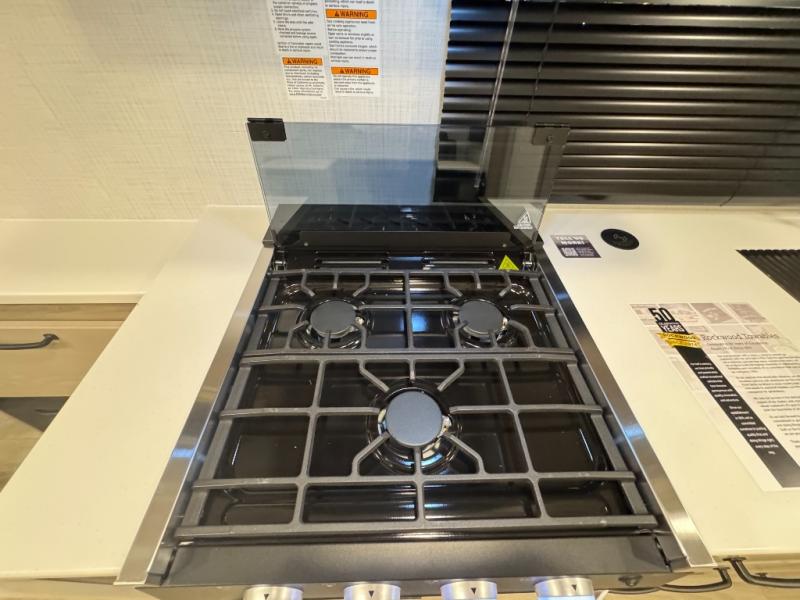 Outside action? Bring it. The outdoor griddle with LP hookup and the 18' power awning with LED lighting invite you to cook, dine, and lounge under the sky with shelter.