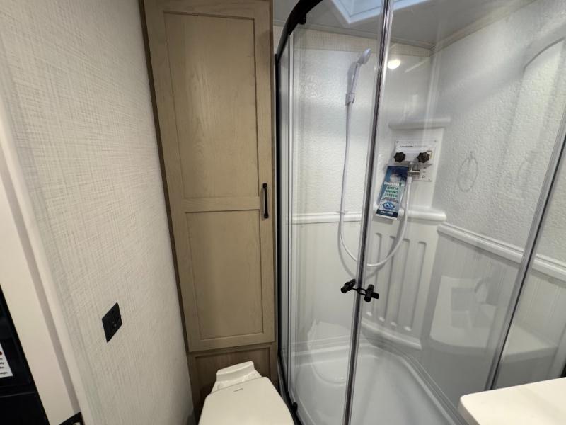 The queen bed up front provides a real night’s sleep, with dual bedroom wardrobes giving both you and your partner space to organize clothes without clutter.
