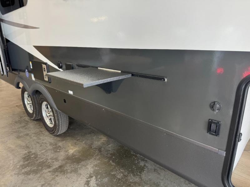 From official sources, the 2025 2205S comes in at 23 ft 10 in in length, one slide, 8 ft external width, dry weight around 5,132 lbs, generous fresh water capacity (54 gal), and strong furnace and AC capabilities.