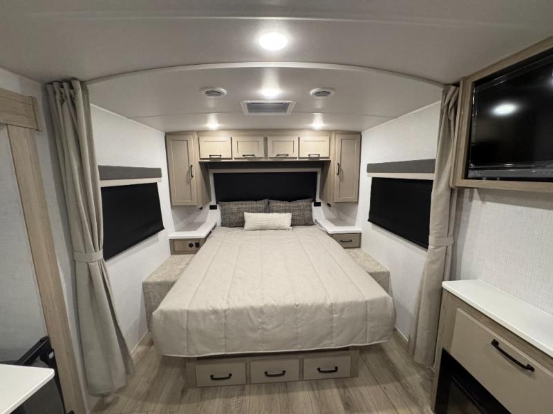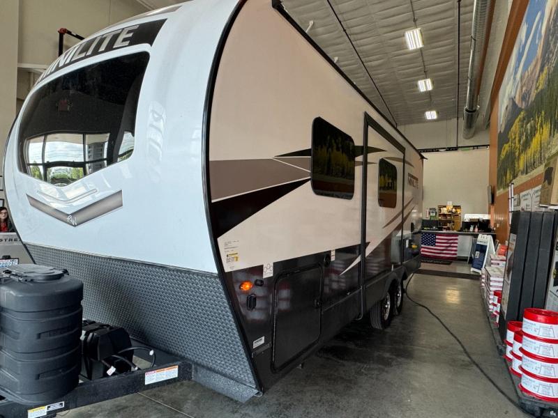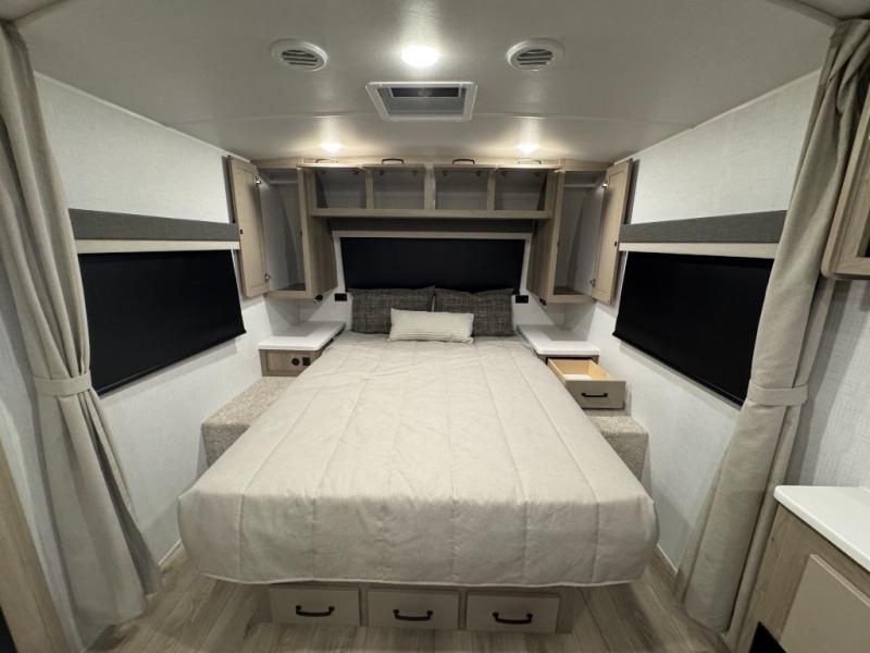 If you’re searching for a travel trailer just for two—but one that doesn’t skimp on features or comfort—the 2025 Rockwood Mini Lite 2205S steps up in a major way. At under 24 feet, this single-slide model is built for couples or solo travelers who want luxury touches, easy towing, and a layout that feels like home from the moment you drop the stabilizers.