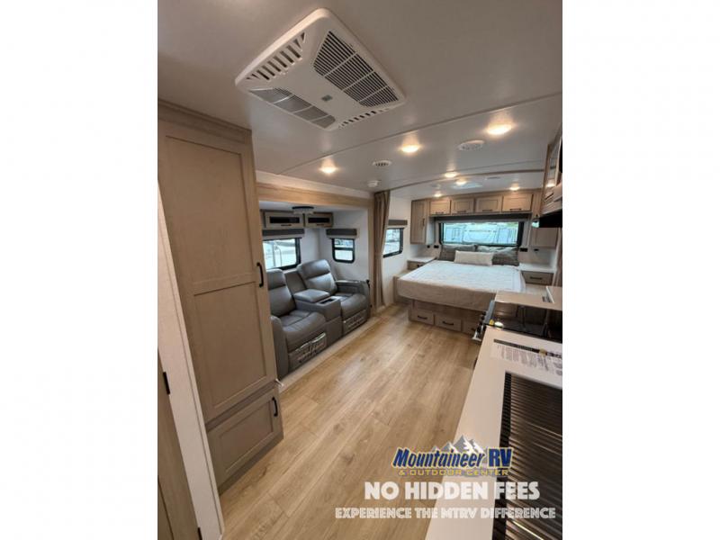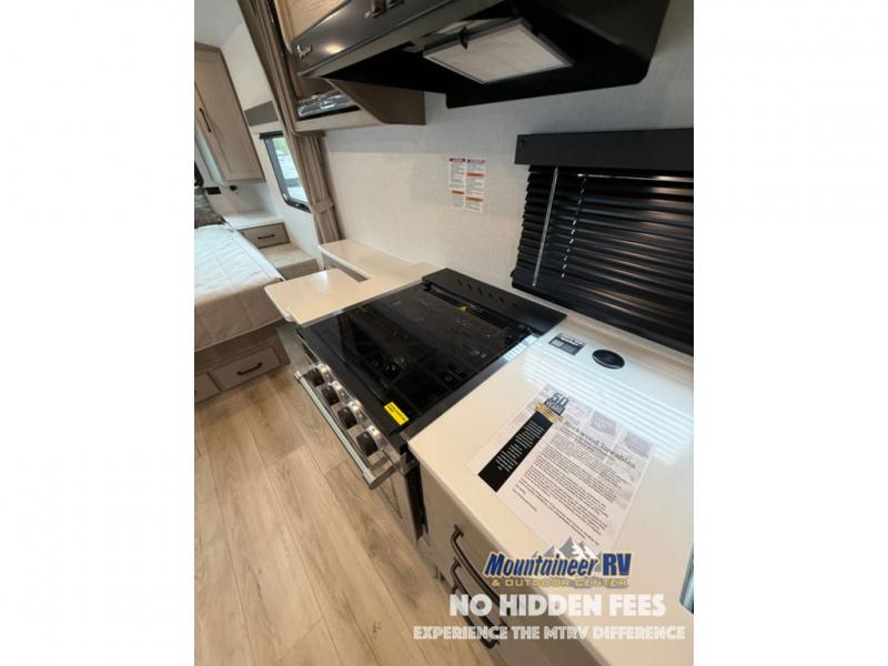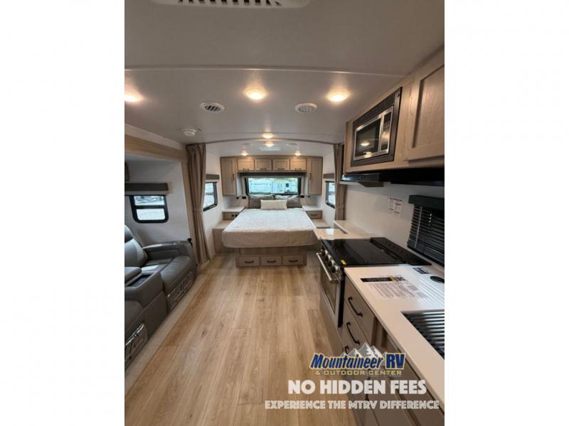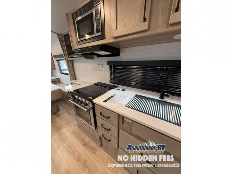 Enjoy the camping season with your spouse, friend, or significant other in this cozy travel trailer for two. Each morning, you can have your coffee on the 67" theater seats with a table within the slide out, then head outdoors to make pancakes on the outdoor griddle with an LP hookup. The interior kitchen includes a three burner cooktop, a microwave oven, plus a 12 volt refrigerator for perishables. An entertainment center with a fireplace will make your space feel more like home, and what's better than sleeping on your own queen bed with dual bedroom wardrobes for your clothes!?