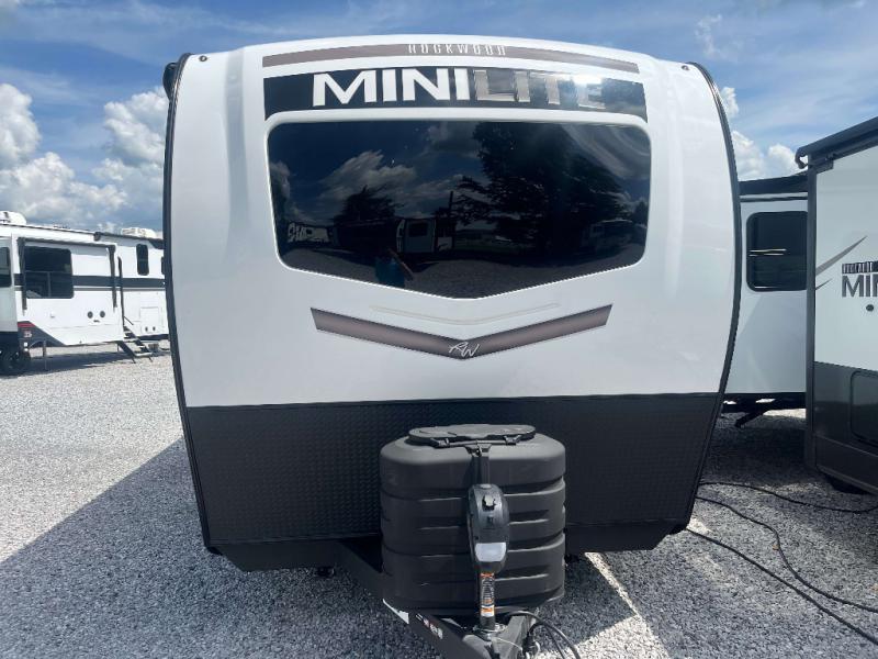 Each Rockwood Mini Lite travel trailer by Forest River is constructed with a fully laminated one-piece walkable roof, sleek frameless windows, and a six-sided full aluminum frame for strength and durability. The 12V thermostatically controlled heated tanks, plus radiant foil in the underbelly and slide out floors will allow you to camp well into the colder months, and the 200W roof solar panel will be perfect for a little off-gridding. Each model includes solid surface kitchen countertops, solid wood cabinet doors, night roller shades, plus many more interior features. Having an AIR 360+ omnidirectional antenna with WiFi prep on board gives you the option to get some work done if it's needed, and the power tongue jack provides hassle-free set up, so you can enjoy more time relaxing!