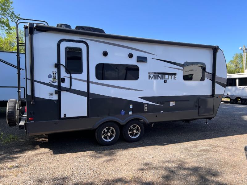 Each Rockwood Mini Lite travel trailer by Forest River is constructed with a fully laminated one-piece walkable roof, sleek frameless windows, and a six-sided full aluminum frame for strength and durability. The 12V thermostatically controlled heated tanks, plus radiant foil in the underbelly and slide out floors will allow you to camp well into the colder months, and the 200W roof solar panel will be perfect for a little off-gridding. Each model includes solid surface kitchen countertops, solid wood cabinet doors, night roller shades, plus many more interior features. Having an AIR 360+ omnidirectional antenna with WiFi prep on board gives you the option to get some work done if it's needed, and the power tongue jack provides hassle-free set up, so you can enjoy more time relaxing!
