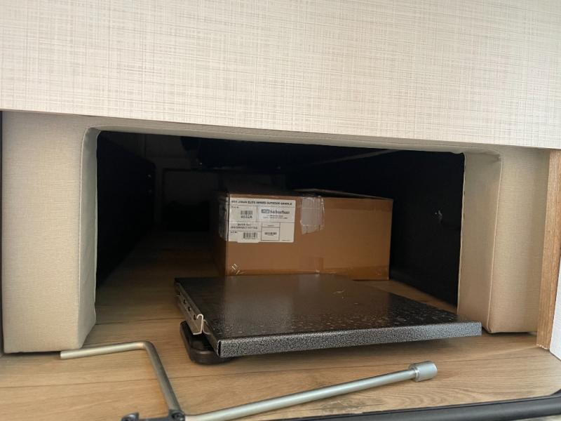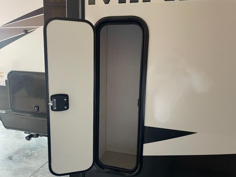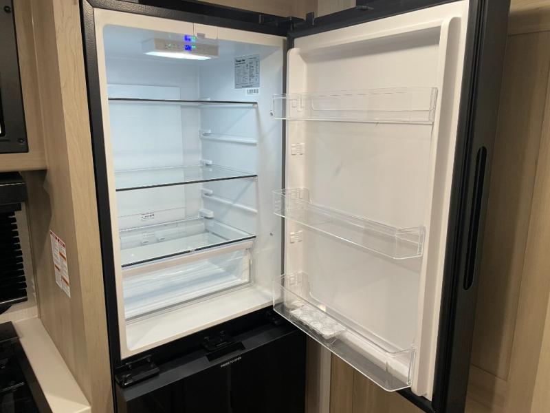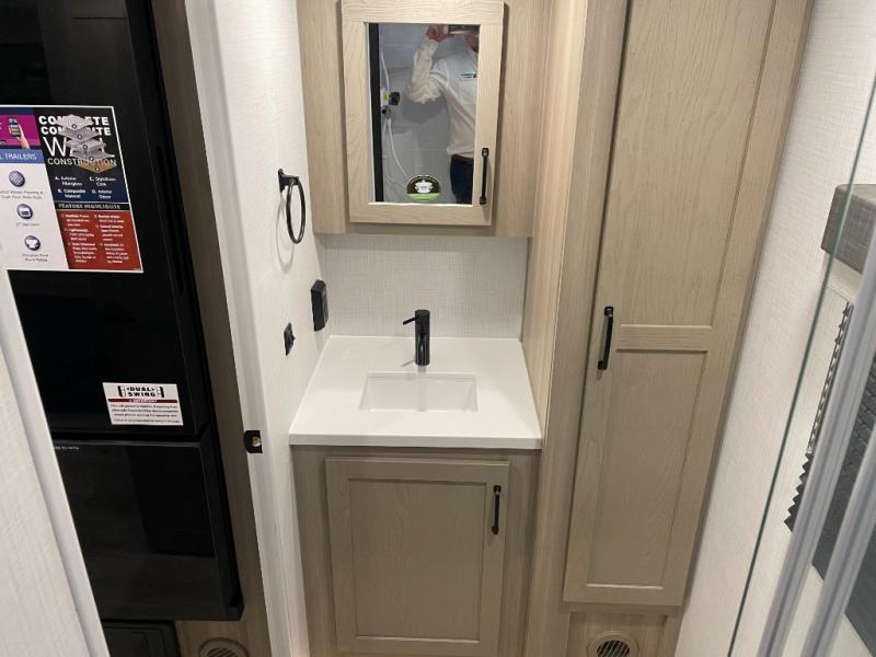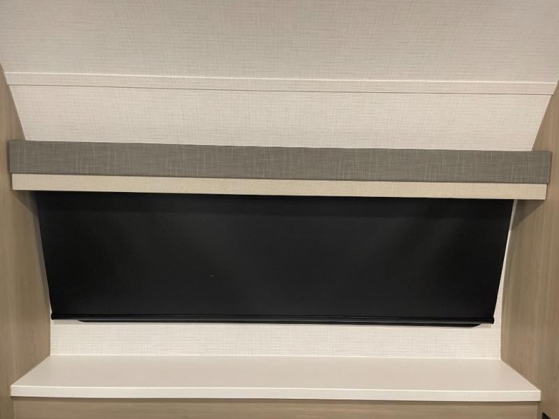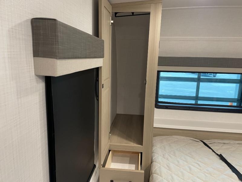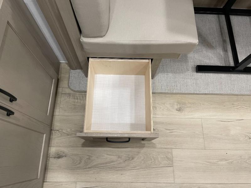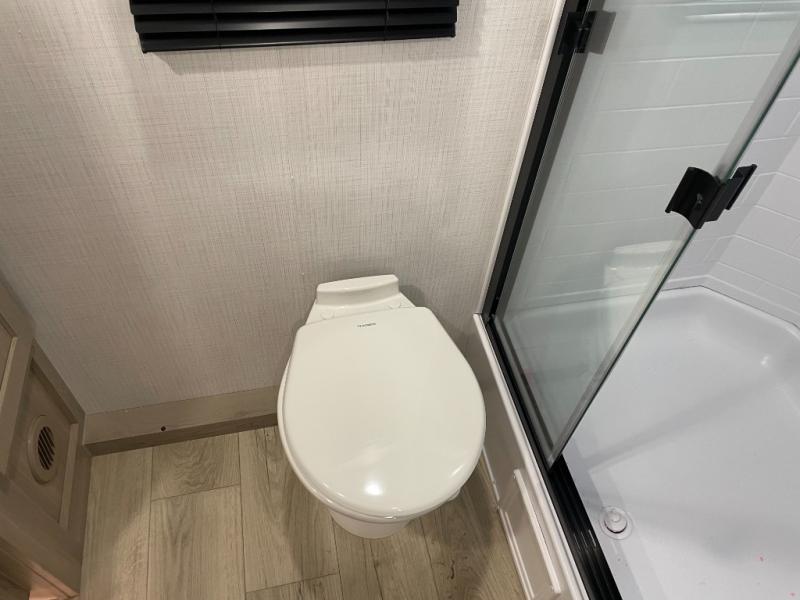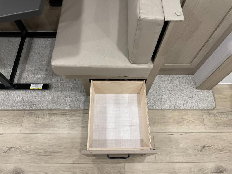 This versatile and cozy travel trailer will be perfect for weekend trips to the lake. Once you arrive at your campground, you can unload the water toys from the pass-thru storage, put out the 15' power awning, then make lunch on the exterior griddle. The U-shaped dinette slide inside will provide a place to dine, play board games, and let a guest or two sleep over, while you take the RV queen-size Murphy bed up front. In the morning, just fold up the bed to expose the 74" sofa! There is a three burner cooktop and microwave oven in the kitchen to make meals each day, along with a 12V refrigerator to keep leftovers fresh.