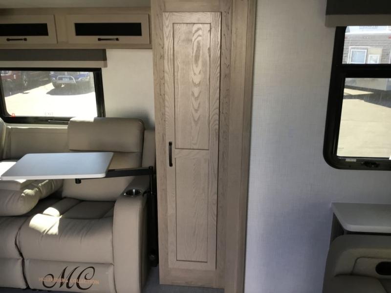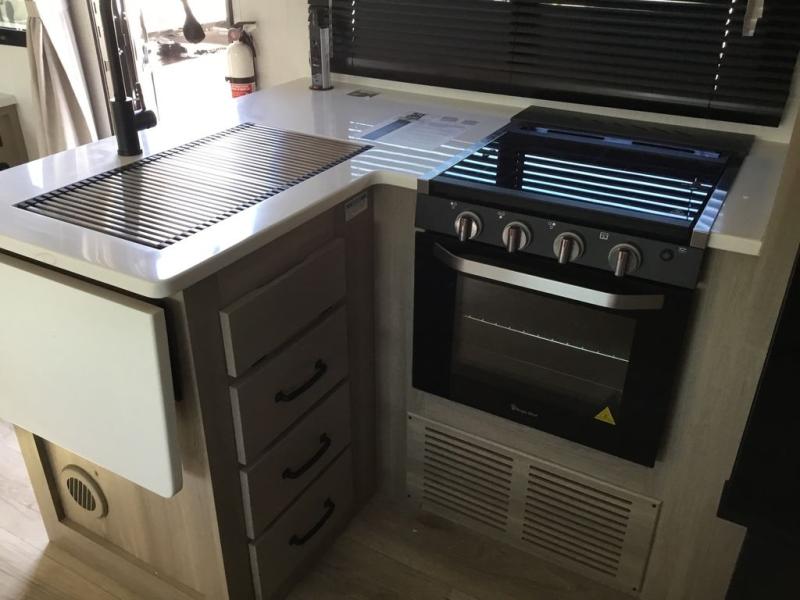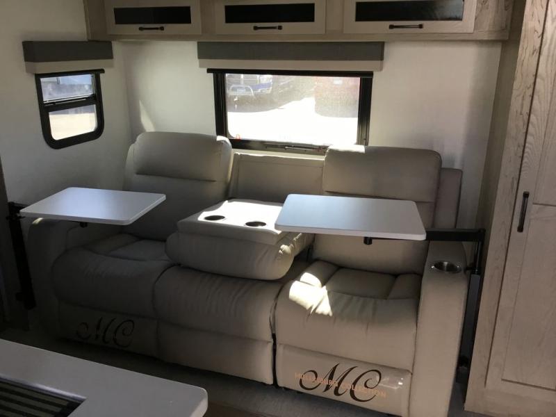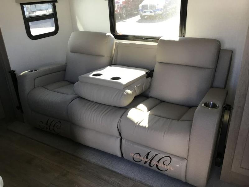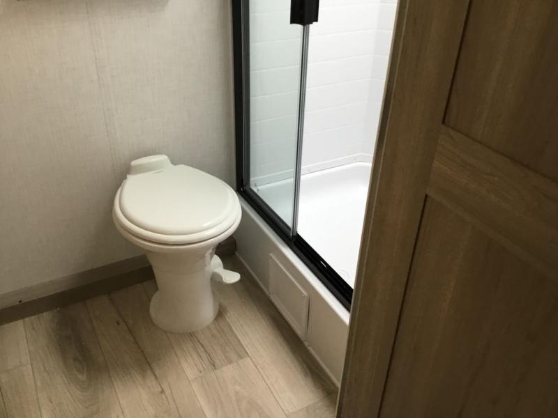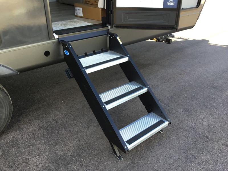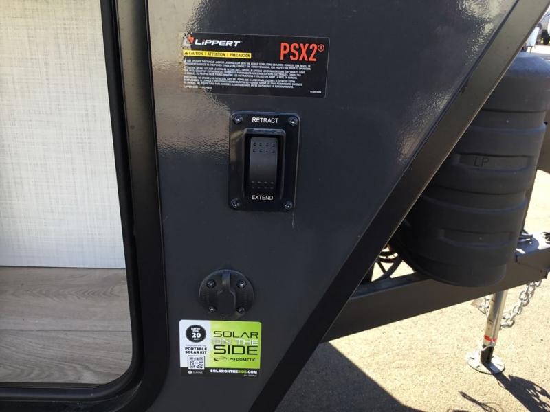 This versatile and cozy travel trailer will be perfect for weekend trips to the lake. Once you arrive at your campground, you can unload the water toys from the pass-thru storage, put out the 15' power awning, then make lunch on the exterior griddle. The U-shaped dinette slide inside will provide a place to dine, play board games, and let a guest or two sleep over, while you take the RV queen-size Murphy bed up front. In the morning, just fold up the bed to expose the 74" sofa! There is a three burner cooktop and microwave oven in the kitchen to make meals each day, along with a 12V refrigerator to keep leftovers fresh.