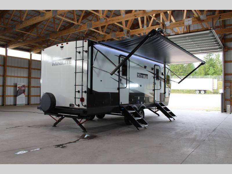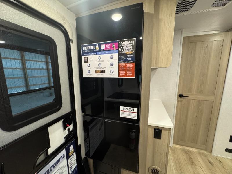 Each Rockwood Mini Lite travel trailer by Forest River is constructed with a fully laminated one-piece walkable roof, sleek frameless windows, and a six-sided full aluminum frame for strength and durability. The 12V thermostatically controlled heated tanks, plus radiant foil in the underbelly and slide out floors will allow you to camp well into the colder months, and the 200W roof solar panel will be perfect for a little off-gridding. Each model includes solid surface kitchen countertops, solid wood cabinet doors, night roller shades, plus many more interior features. Having an AIR 360+ omnidirectional antenna with WiFi prep on board gives you the option to get some work done if it's needed, and the power tongue jack provides hassle-free set up, so you can enjoy more time relaxing!