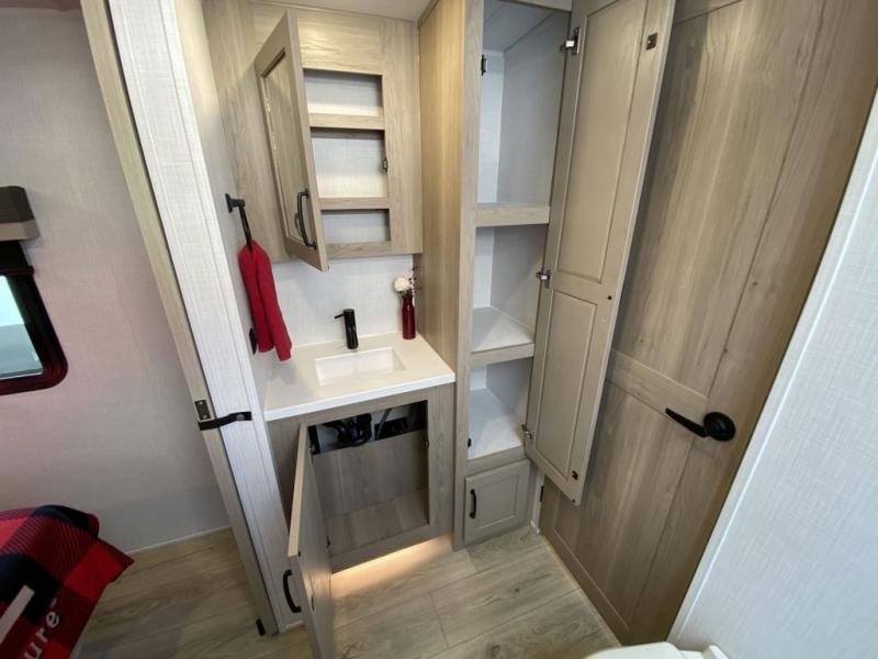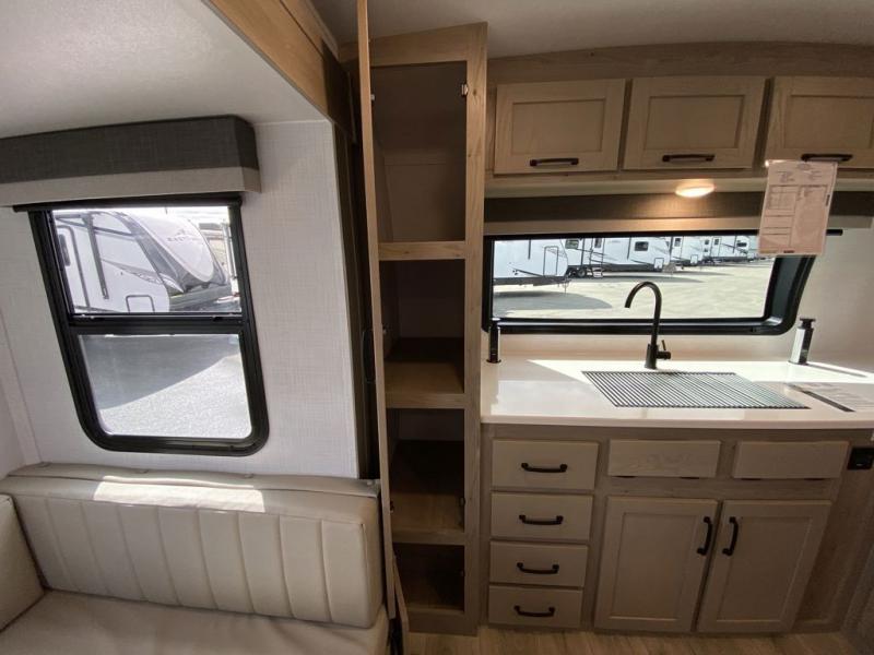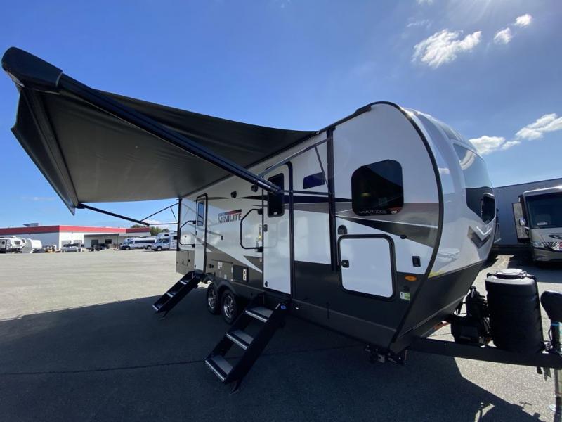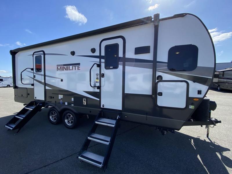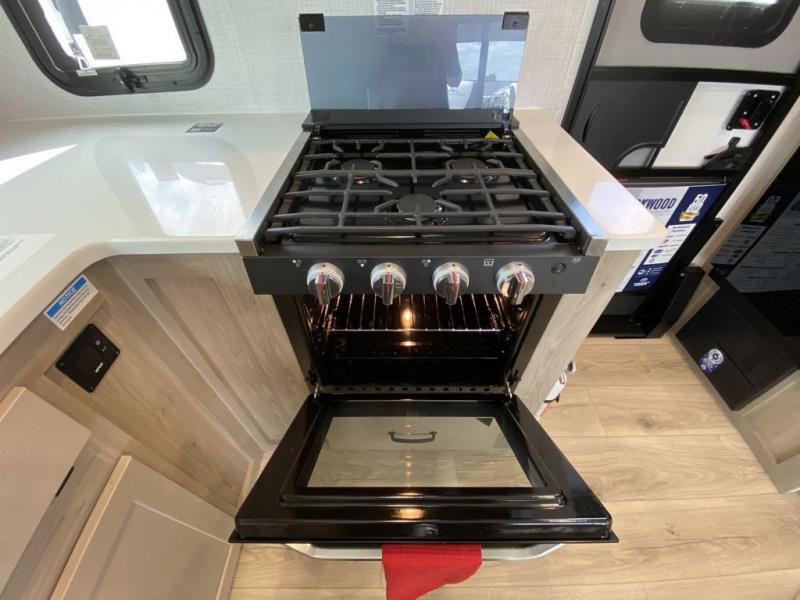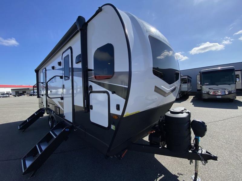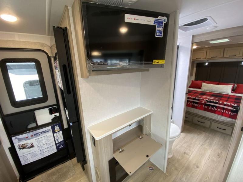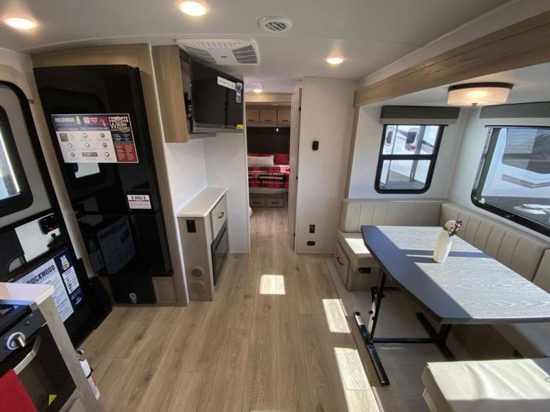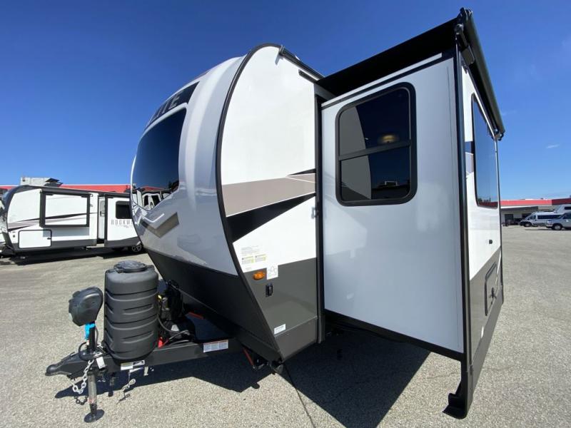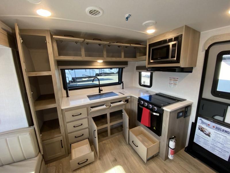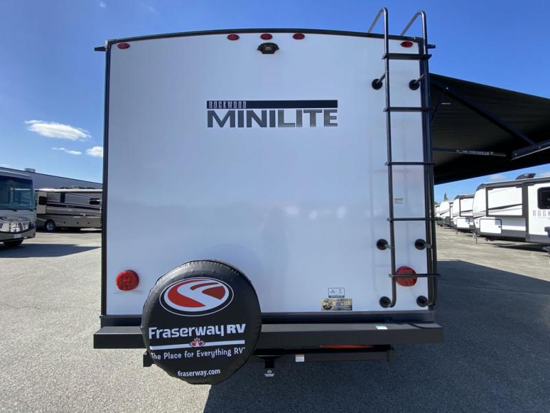 Each Rockwood Mini Lite travel trailer by Forest River is constructed with a fully laminated one-piece walkable roof, sleek frameless windows, and a six-sided full aluminum frame for strength and durability. The 12V thermostatically controlled heated tanks, plus radiant foil in the underbelly and slide out floors will allow you to camp well into the colder months, and the 200W roof solar panel will be perfect for a little off-gridding. Each model includes solid surface kitchen countertops, solid wood cabinet doors, night roller shades, plus many more interior features. Having an AIR 360+ omnidirectional antenna with WiFi prep on board gives you the option to get some work done if it's needed, and the power tongue jack provides hassle-free set up, so you can enjoy more time relaxing!
