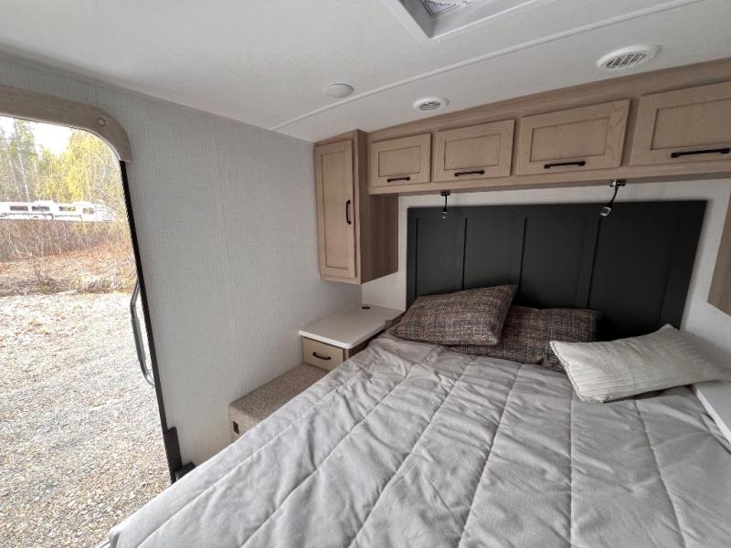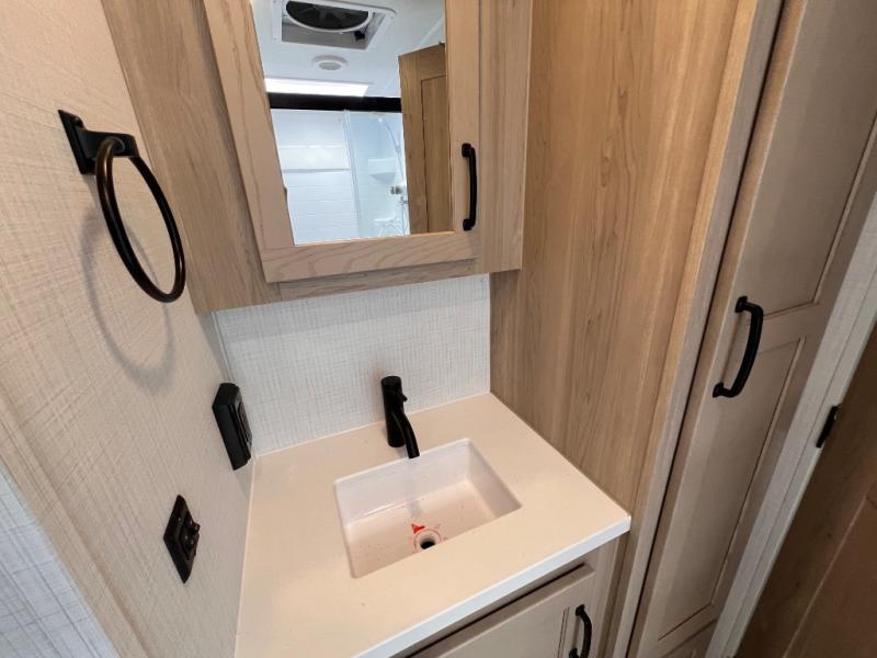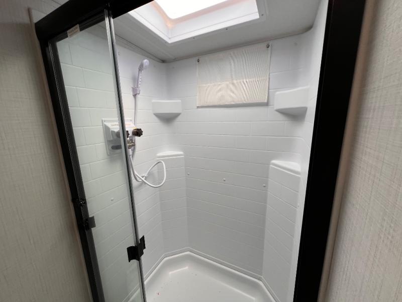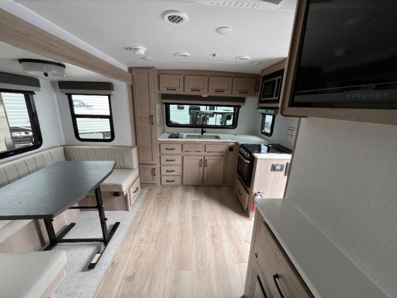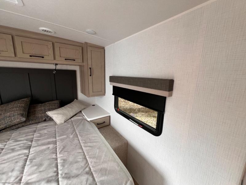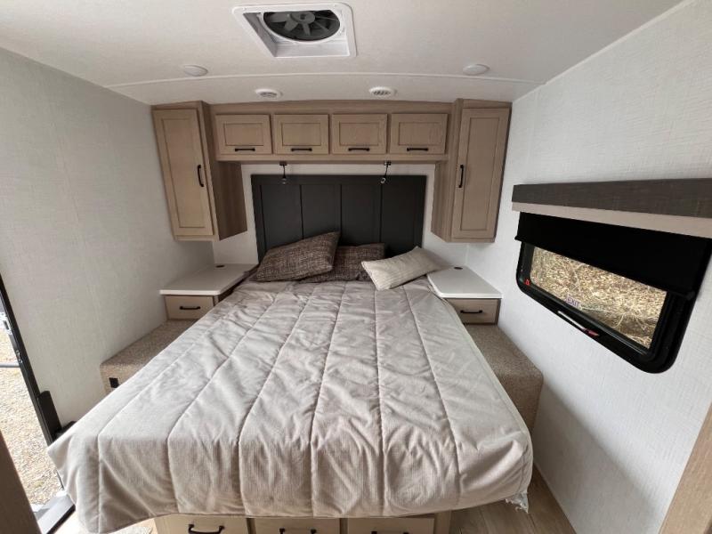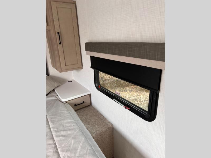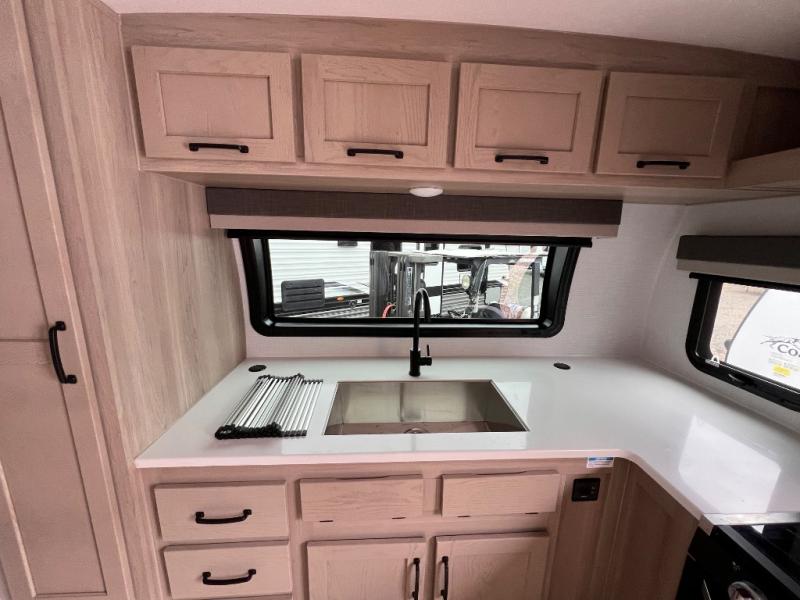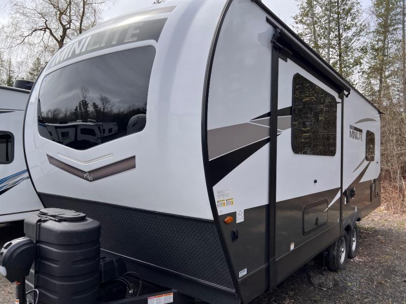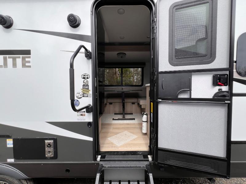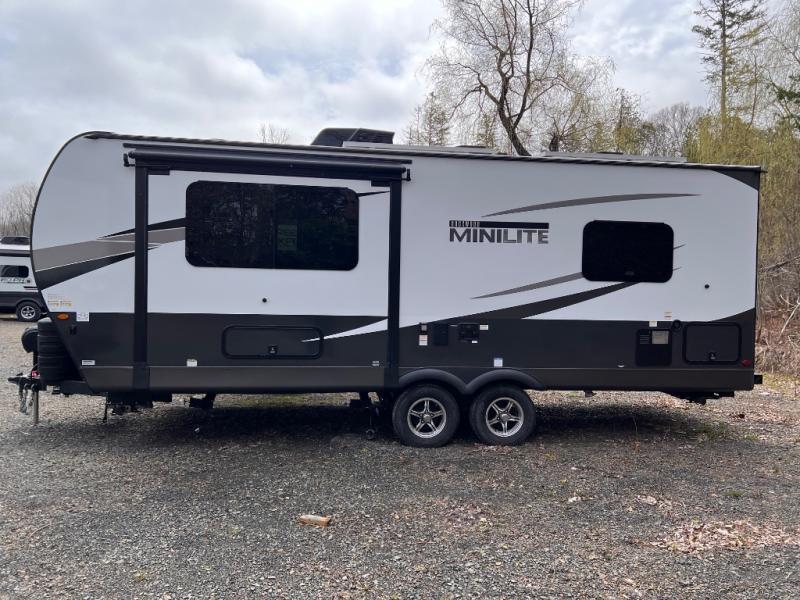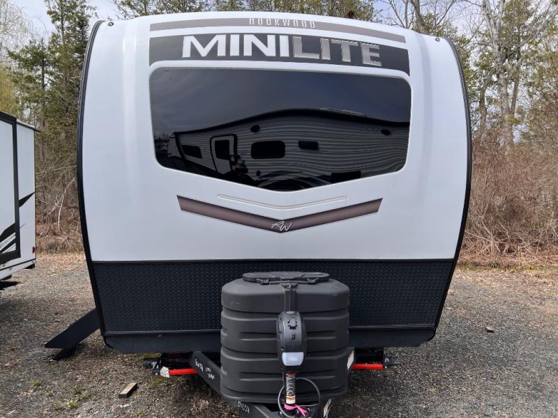 Each Rockwood Mini Lite travel trailer by Forest River is constructed with a fully laminated one-piece walkable roof, sleek frameless windows, and a six-sided full aluminum frame for strength and durability. The 12V thermostatically controlled heated tanks, plus radiant foil in the underbelly and slide out floors will allow you to camp well into the colder months, and the 200W roof solar panel will be perfect for a little off-gridding. Each model includes solid surface kitchen countertops, solid wood cabinet doors, night roller shades, plus many more interior features. Having an AIR 360+ omnidirectional antenna with WiFi prep on board gives you the option to get some work done if it's needed, and the power tongue jack provides hassle-free set up, so you can enjoy more time relaxing!