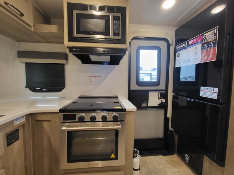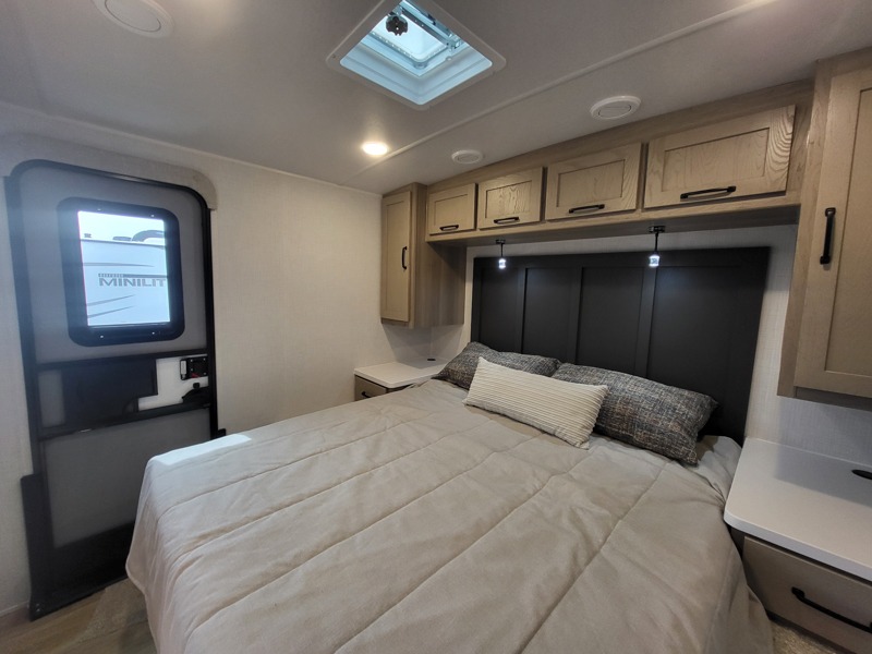 Each Rockwood Mini Lite travel trailer by Forest River is constructed with a fully laminated one-piece walkable roof, sleek frameless windows, and a six-sided full aluminum frame for strength and durability. The 12V thermostatically controlled heated tanks, plus radiant foil in the underbelly and slide out floors will allow you to camp well into the colder months, and the 200W roof solar panel will be perfect for a little off-gridding. Each model includes solid surface kitchen countertops, solid wood cabinet doors, night roller shades, plus many more interior features. Having an AIR 360+ omnidirectional antenna with WiFi prep on board gives you the option to get some work done if it's needed, and the power tongue jack provides hassle-free set up, so you can enjoy more time relaxing!