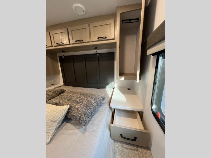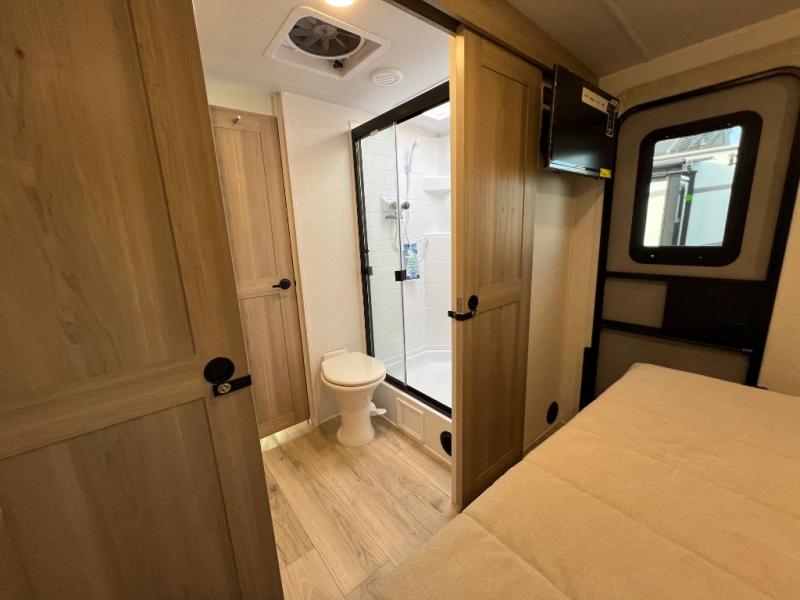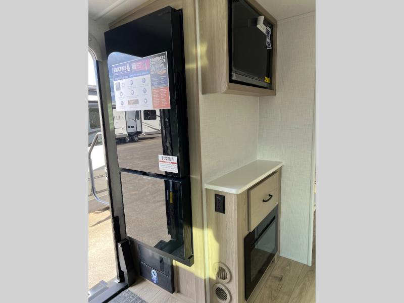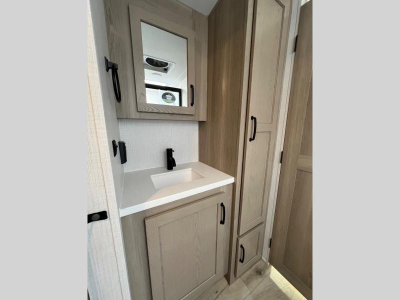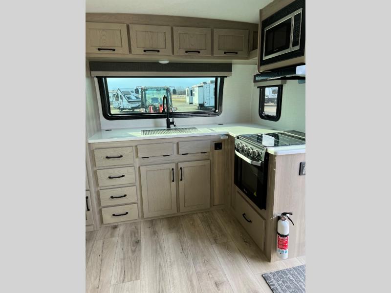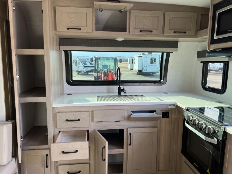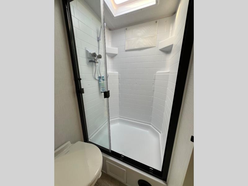 Each Rockwood Mini Lite travel trailer by Forest River is constructed with a fully laminated one-piece walkable roof, sleek frameless windows, and a six-sided full aluminum frame for strength and durability. The 12V thermostatically controlled heated tanks, plus radiant foil in the underbelly and slide out floors will allow you to camp well into the colder months, and the 200W roof solar panel will be perfect for a little off-gridding. Each model includes solid surface kitchen countertops, solid wood cabinet doors, night roller shades, plus many more interior features. Having an AIR 360+ omnidirectional antenna with WiFi prep on board gives you the option to get some work done if it's needed, and the power tongue jack provides hassle-free set up, so you can enjoy more time relaxing!