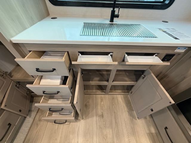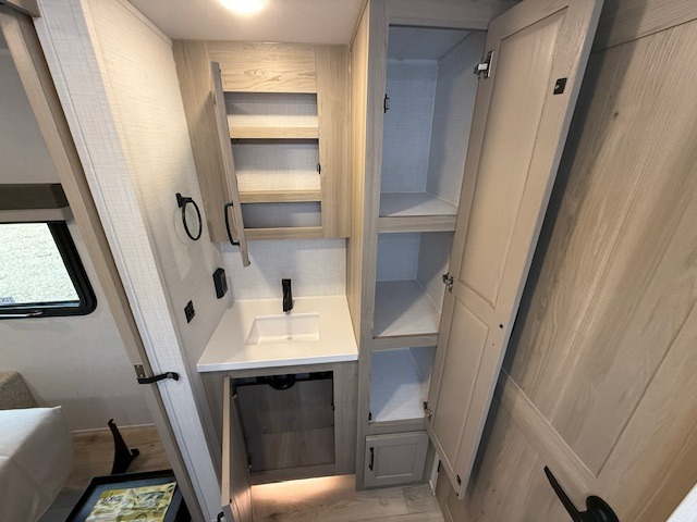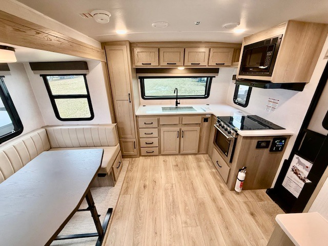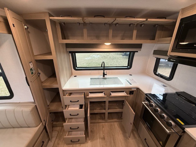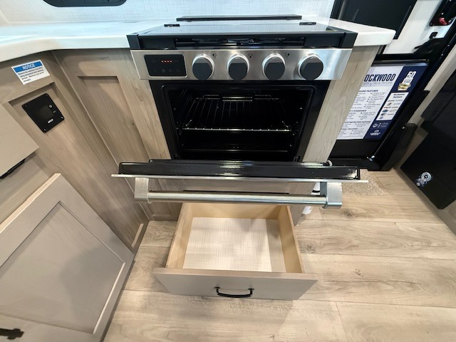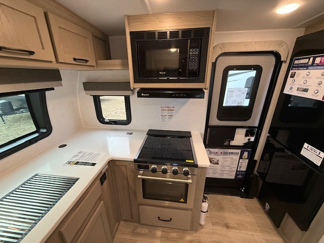 Love the front kitchen design? You’ll be impressed with how the Rockwood Mini Lite 2506FK makes every inch count. With expansive counter space and a fully equipped kitchen, meal prep is easy—whether you’re whipping up breakfast indoors or grilling outside on the convenient outdoor griddle.