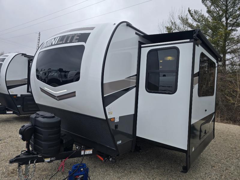 Each Rockwood Mini Lite travel trailer by Forest River is constructed with a fully laminated one-piece walkable roof, sleek frameless windows, and a six-sided full aluminum frame for strength and durability. The 12V thermostatically controlled heated tanks, plus radiant foil in the underbelly and slide out floors will allow you to camp well into the colder months, and the 200W roof solar panel will be perfect for a little off-gridding. Each model includes solid surface kitchen countertops, solid wood cabinet doors, night roller shades, plus many more interior features. Having an AIR 360+ omnidirectional antenna with WiFi prep on board gives you the option to get some work done if it's needed, and the power tongue jack provides hassle-free set up, so you can enjoy more time relaxing!