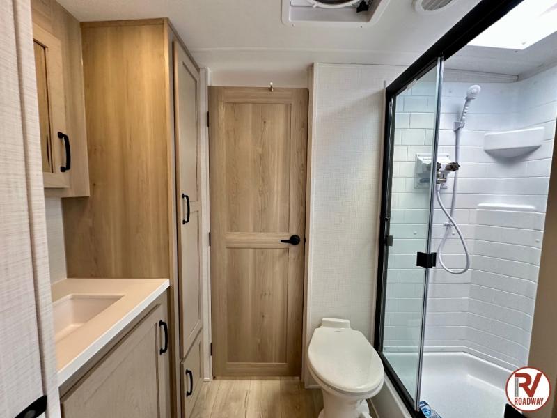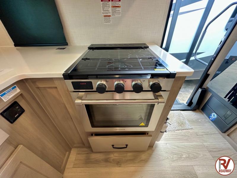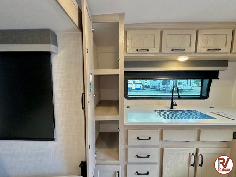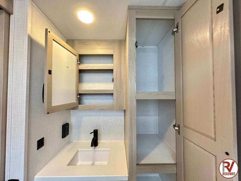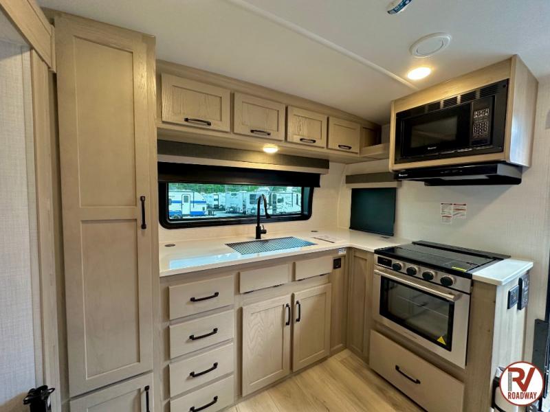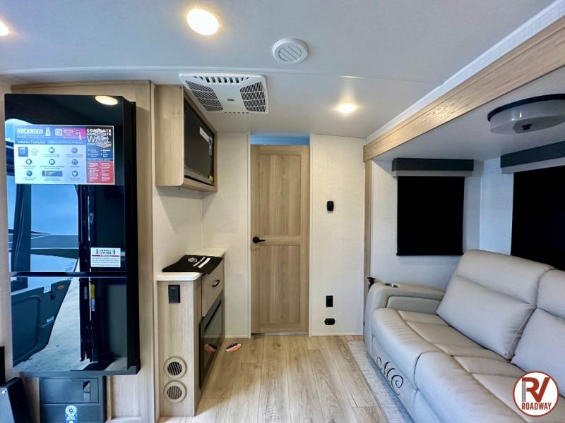 Each Rockwood Mini Lite travel trailer by Forest River is constructed with a fully laminated one-piece walkable roof, sleek frameless windows, and a six-sided full aluminum frame for strength and durability. The 12V thermostatically controlled heated tanks, plus radiant foil in the underbelly and slide out floors will allow you to camp well into the colder months, and the 200W roof solar panel will be perfect for a little off-gridding. Each model includes solid surface kitchen countertops, solid wood cabinet doors, night roller shades, plus many more interior features. Having an AIR 360+ omnidirectional antenna with WiFi prep on board gives you the option to get some work done if it's needed, and the power tongue jack provides hassle-free set up, so you can enjoy more time relaxing!