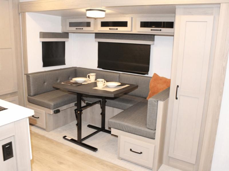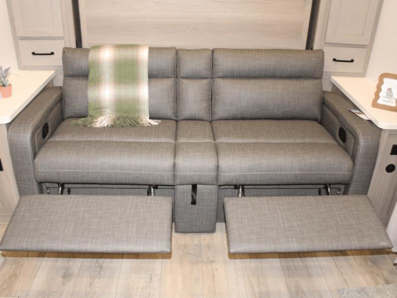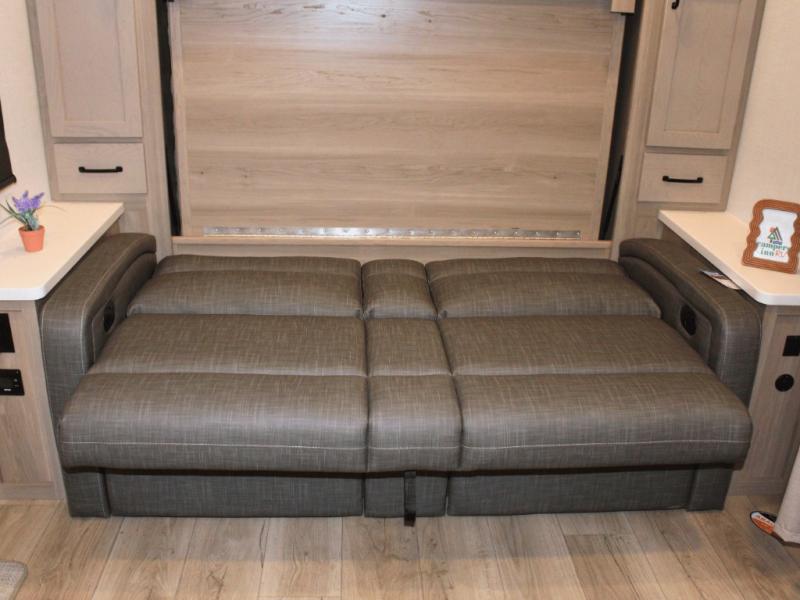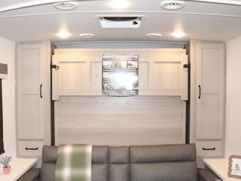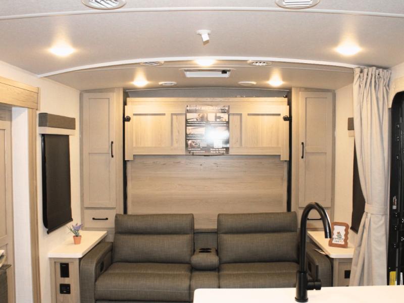 Step inside and enjoy a versatile layout featuring a Murphy bed that transforms from open living space to a cozy bedroom in seconds, plus a 72-inch sofa for daytime lounging. Kids and guests will love the double-size bunks, offering plenty of room after big outdoor days. The U-shaped dinette slide gives everyone space to dine, play, or sleep, and a 32-inch TV keeps entertainment close. Prefer the outdoors? Relax beneath the 18-foot power awning with LED lighting. With pass-through storage and extra exterior compartments, packing for adventure is simple.