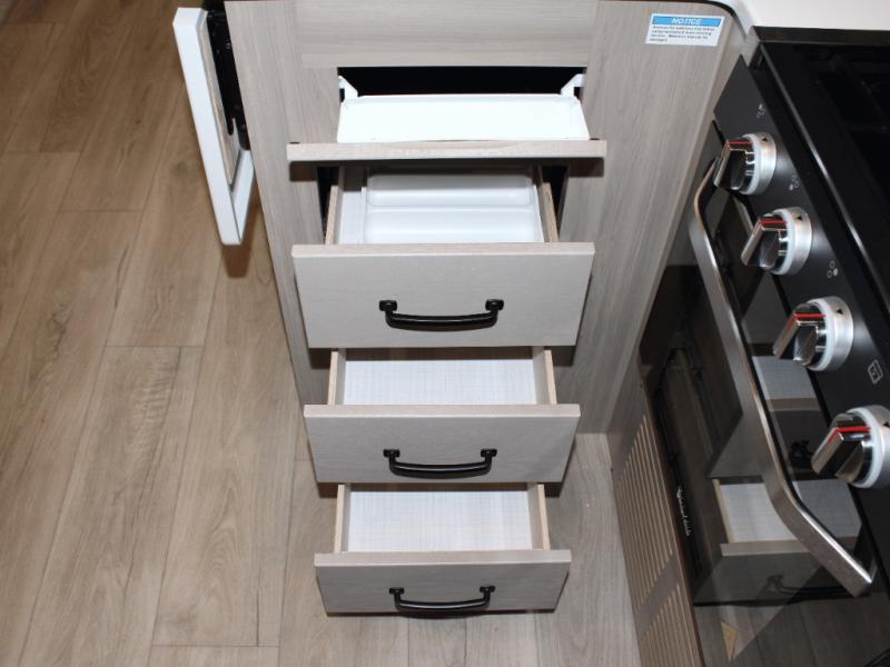 What I liked most: After a lot of searching, we finally found a trailer that "checked all of the boxes". Bunk house, lots of kitchen space (including outside!), a bathroom that larger than a coffin, and a huge awning. The bed is very comfortable...we've even used the heated mattress on a cold Wisconsin morning. All of this, and still under 5500 lbs. When you're inside you can't imagine that it's an easy to tow less than 26 feet long!
