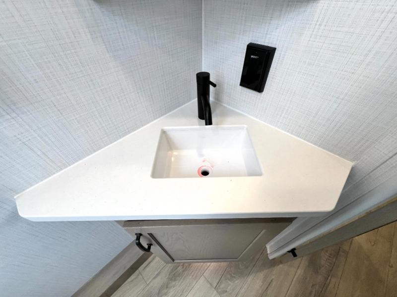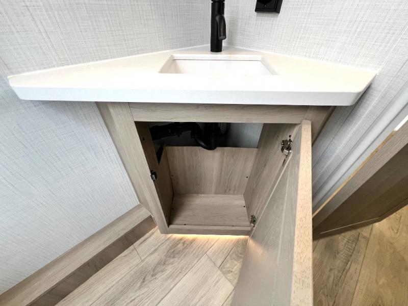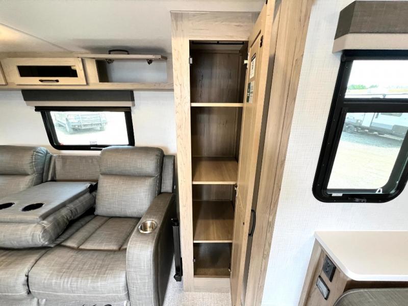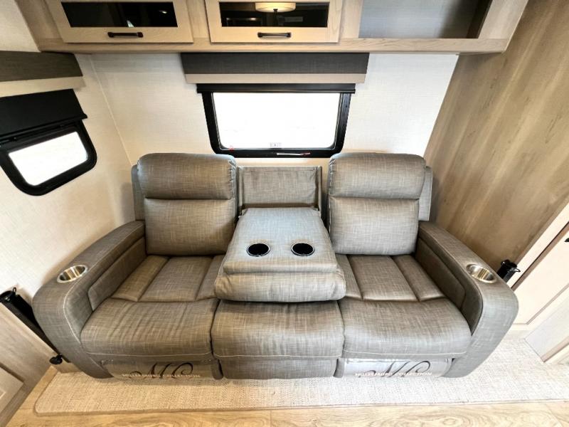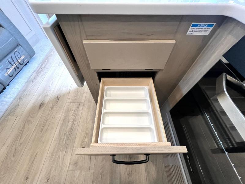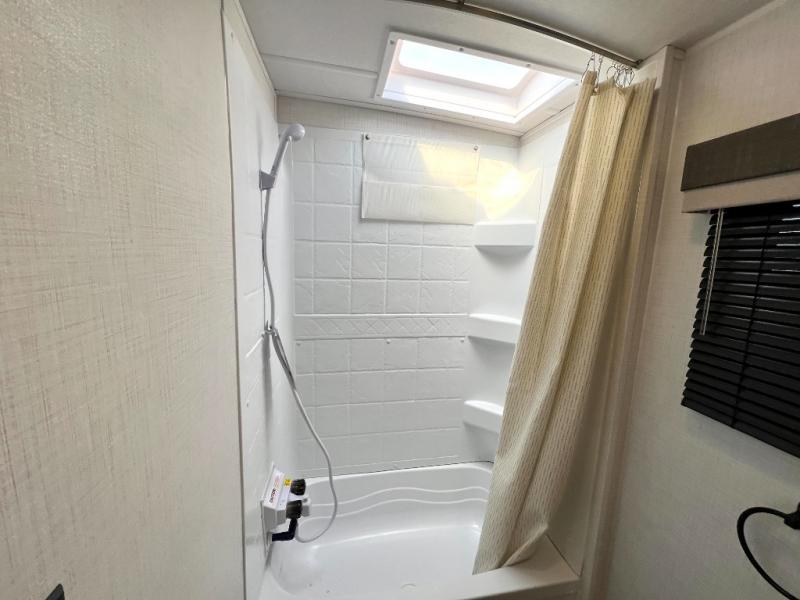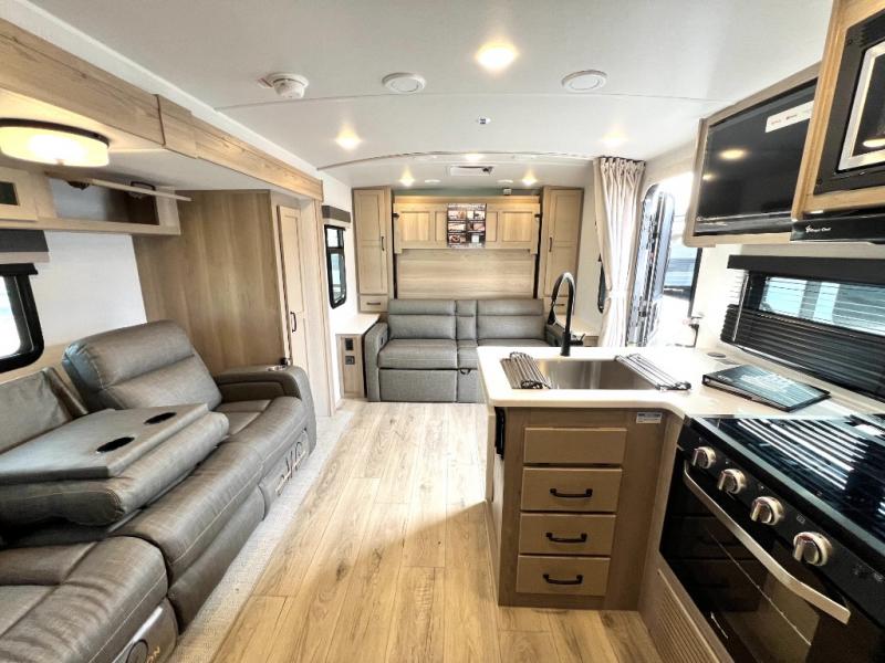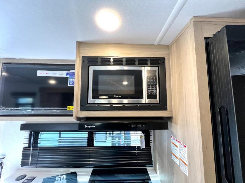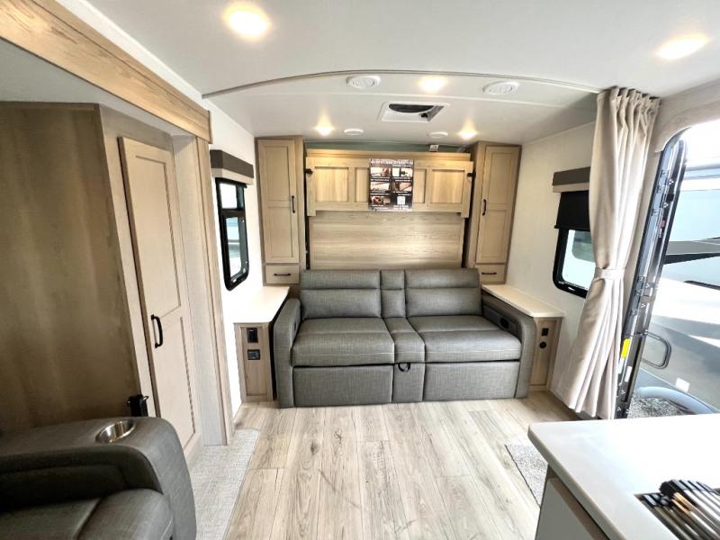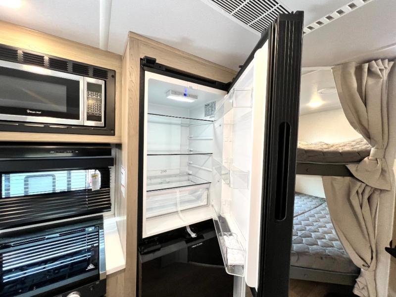 Finally, a lightweight travel trailer with double-size bunks for the kids or your guests! You'll find the versatile Murphy bed up front will be super convenient when you need more space to move around, and the 72" sofa will provide comfy seating space when the bed is put up. This model also includes a U-shaped dinette slide perfect to dine around, play games, and sleep additional guests. A 32" TV in the main living area will allow you to watch your favorite shows in the evenings, or you may just find yourselves outdoors under the 18' power awning with LED lights. And check out the pass-through storage, plus additional exterior storage for your hiking gear!