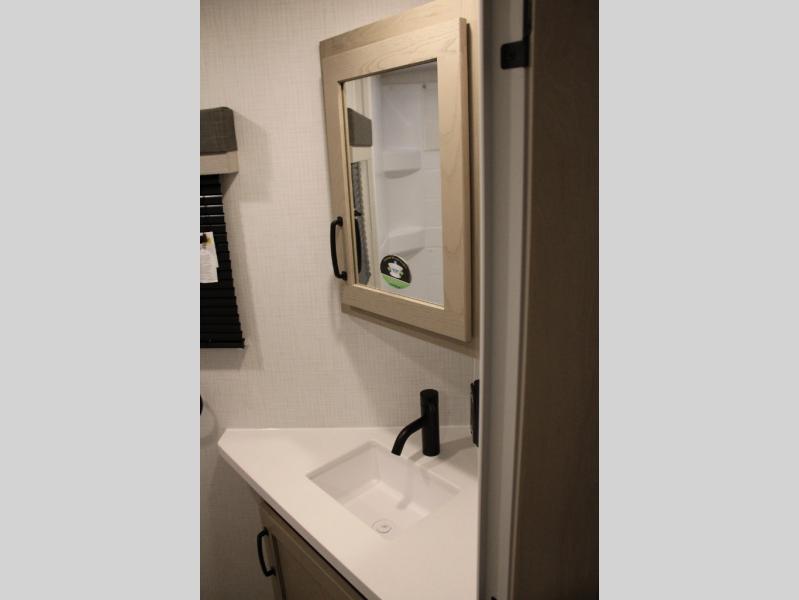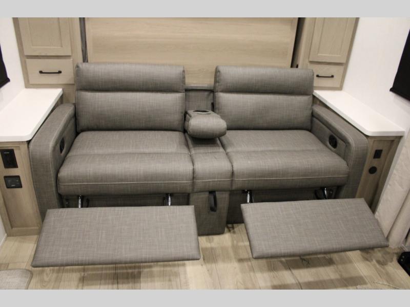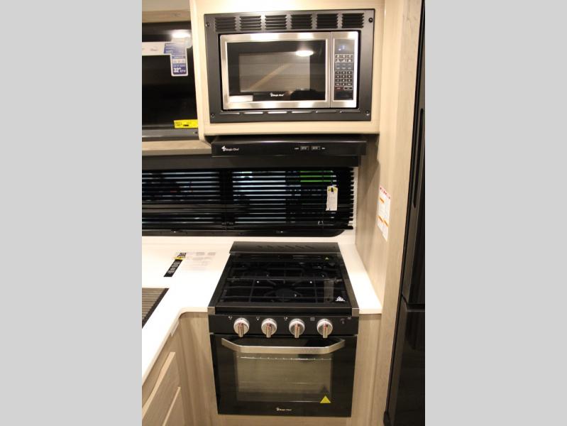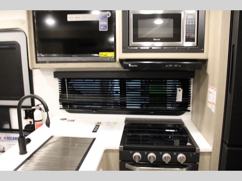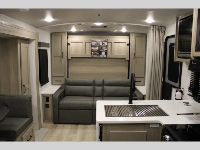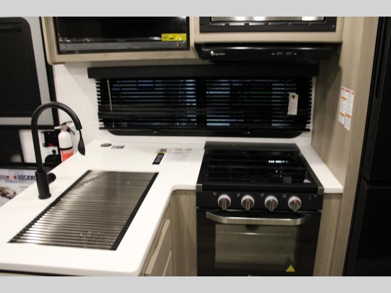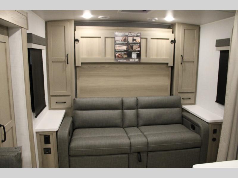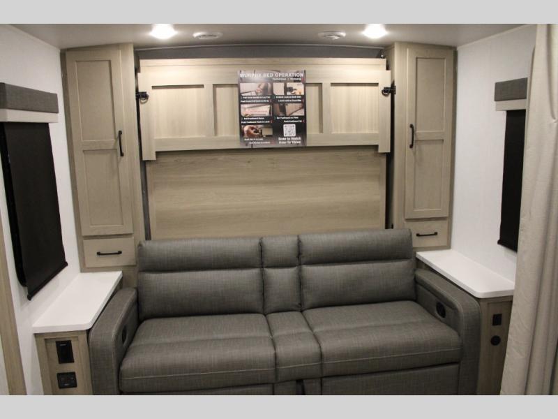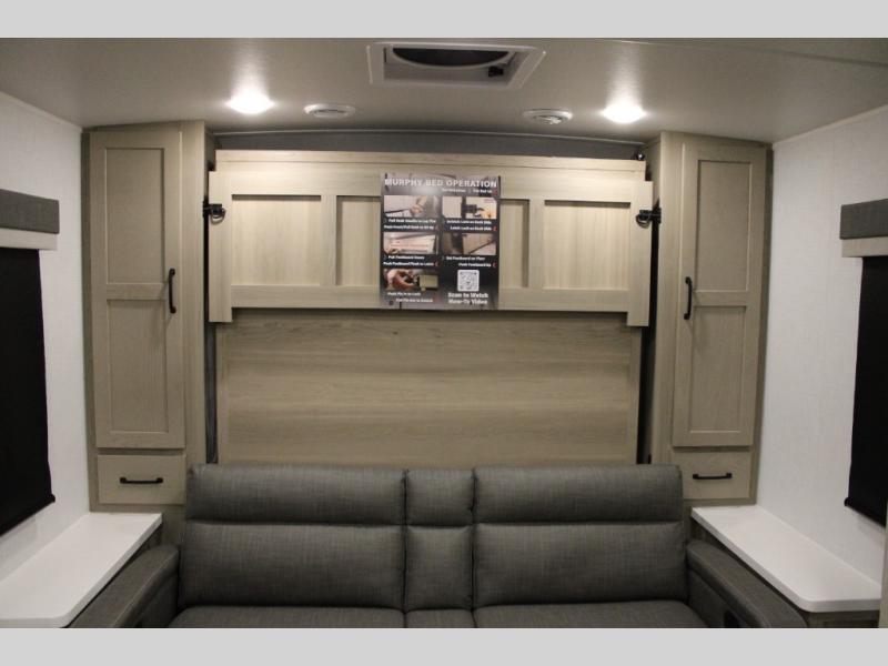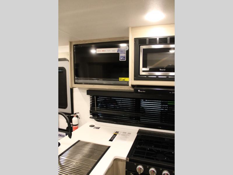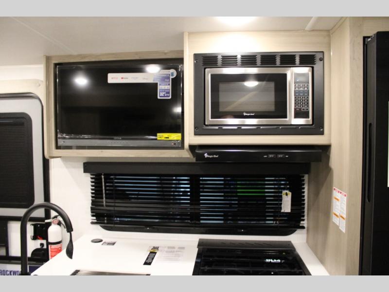 The Rockwood Mini Lite 2509S proves that small can be mighty. Up front, a queen-size Murphy bed transforms into a comfy 72" sofa during the day, giving you added living space without a bulky footprint. It's perfect for lounging, reading, or watching a movie on the 32" TV in the main living area.