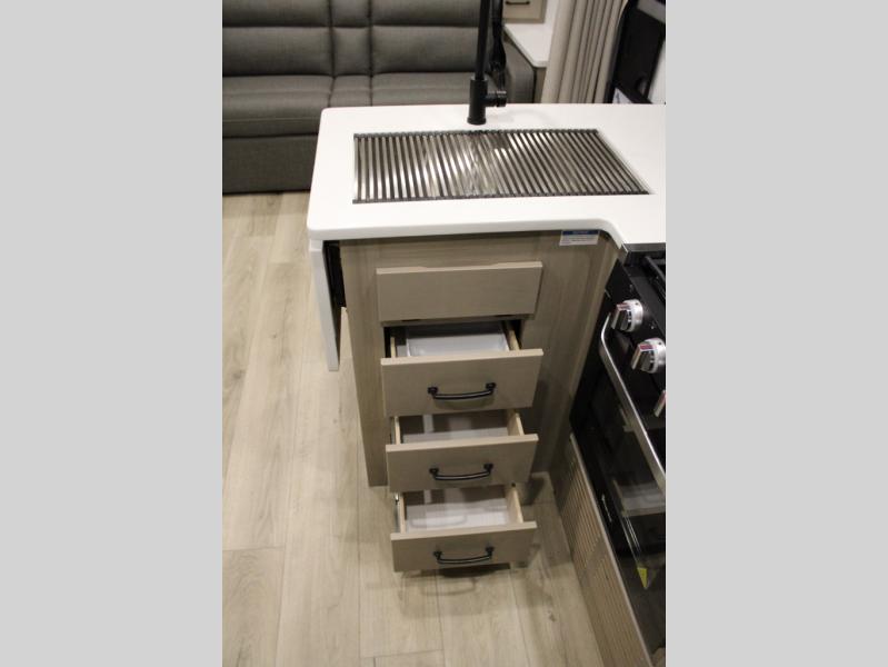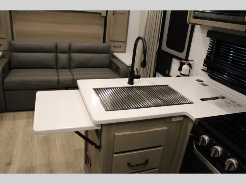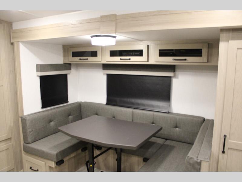 Your crew will love the double-over-double bunks in the back, offering extra space for kids, teens, or overnight guests. Need more sleeping room? The U-shaped dinette slide easily converts into another bed and serves as the perfect hub for meals, games, and late-night snacks.