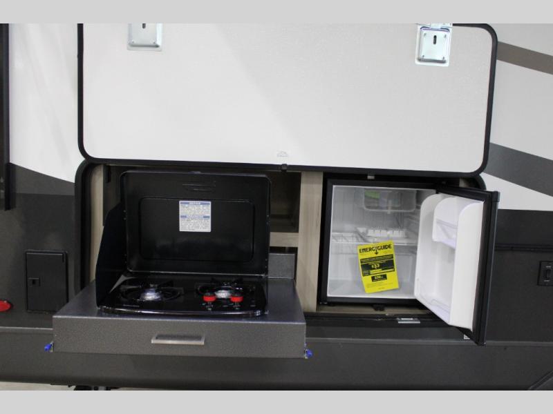 Setup is fast and easy with the power tongue jack, and towing is a breeze thanks to the six-sided aluminum frame and lightweight design.