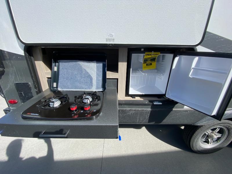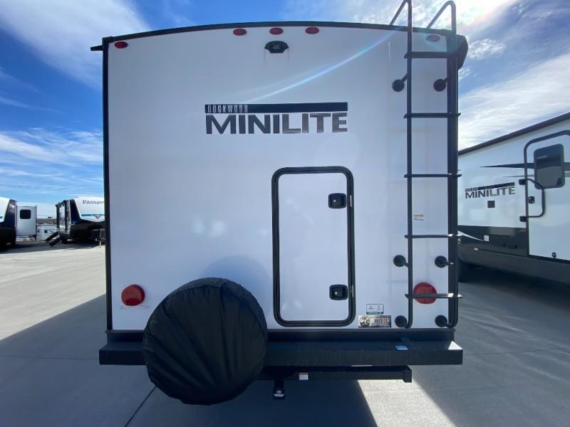 Each Rockwood Mini Lite travel trailer by Forest River is constructed with a fully laminated one-piece walkable roof, sleek frameless windows, and a six-sided full aluminum frame for strength and durability. The 12V thermostatically controlled heated tanks, plus radiant foil in the underbelly and slide out floors will allow you to camp well into the colder months, and the 200W roof solar panel will be perfect for a little off-gridding. Each model includes solid surface kitchen countertops, solid wood cabinet doors, night roller shades, plus many more interior features. Having an AIR 360+ omnidirectional antenna with WiFi prep on board gives you the option to get some work done if it's needed, and the power tongue jack provides hassle-free set up, so you can enjoy more time relaxing!
