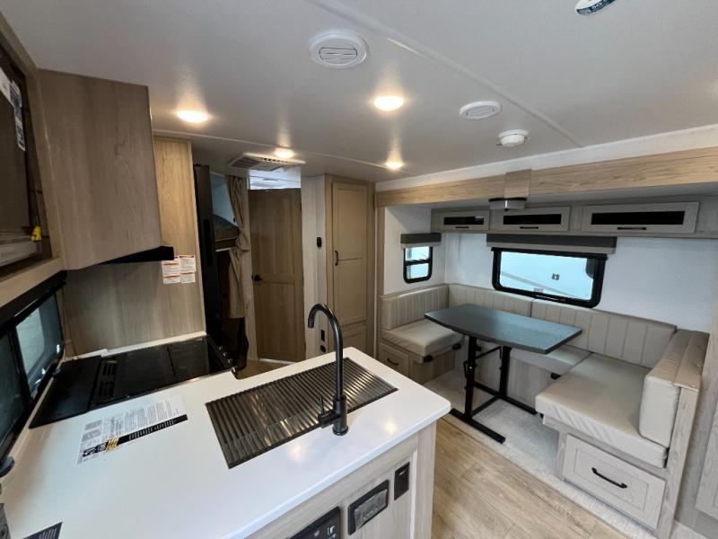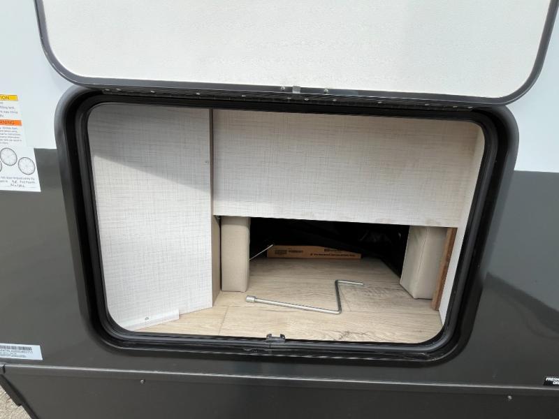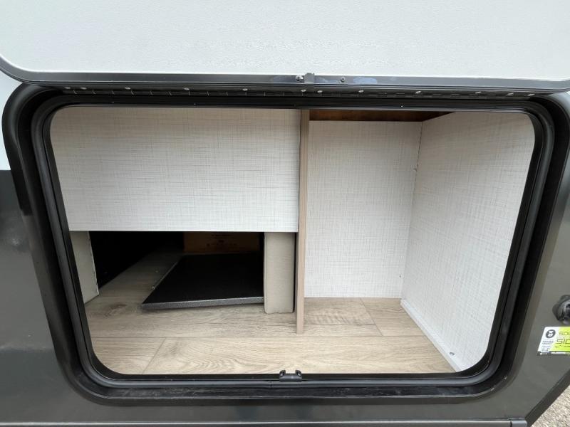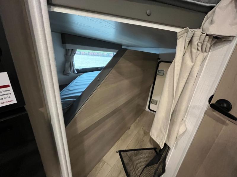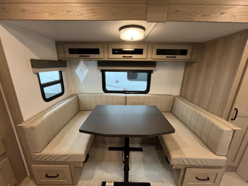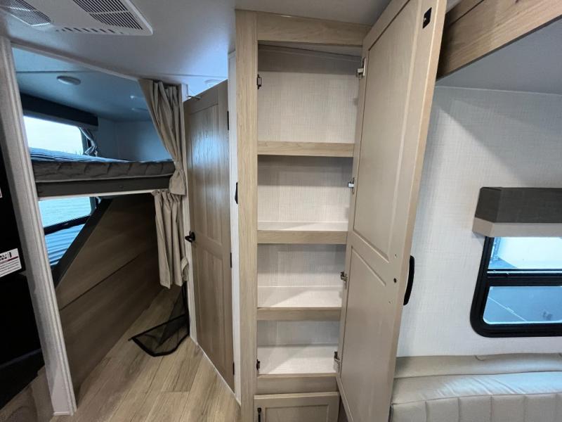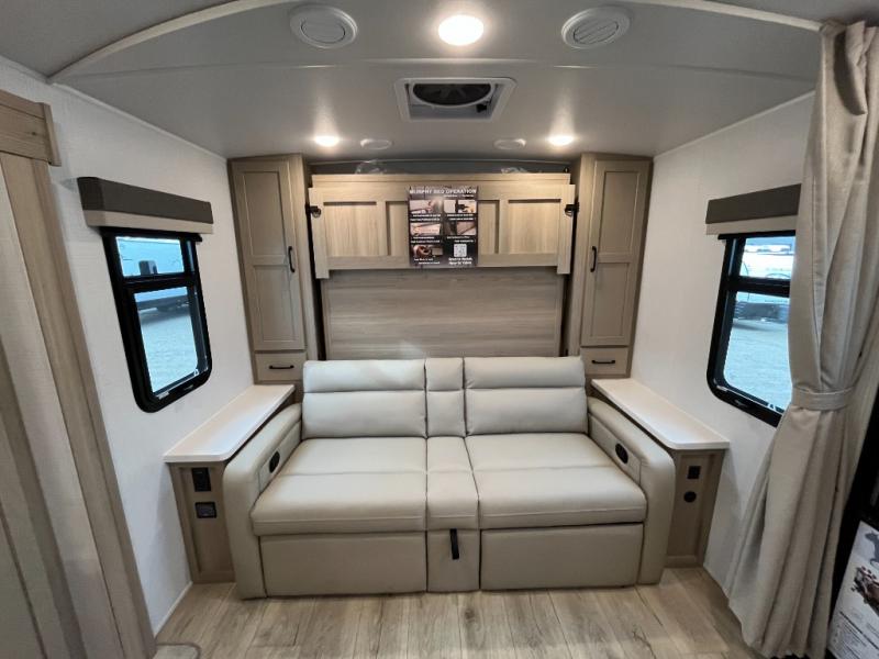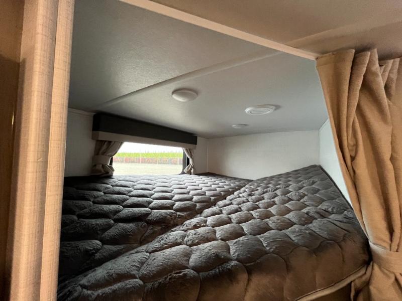Finally, a lightweight travel trailer with double-size bunks for the kids or your guests! You'll find the versatile Murphy bed up front will be super convenient when you need more space to move around, and the 72" sofa will provide comfy seating space when the bed is put up. This model also includes a U-shaped dinette slide perfect to dine around, play games, and sleep additional guests. A 32" TV in the main living area will allow you to watch your favorite shows in the evenings, or you may just find yourselves outdoors under the 18' power awning with LED lights. And check out the pass-through storage, plus additional exterior storage for your hiking gear!