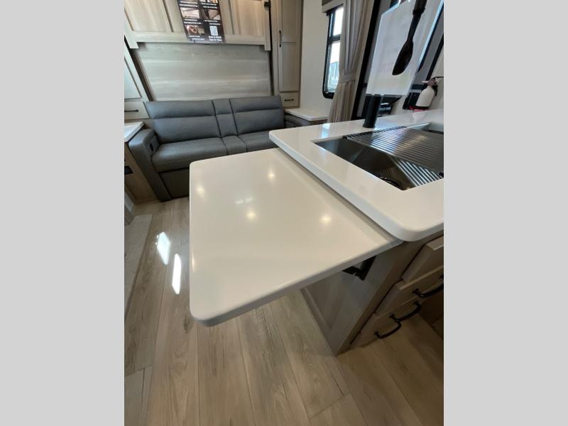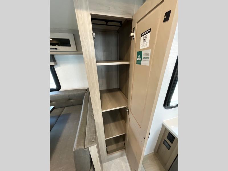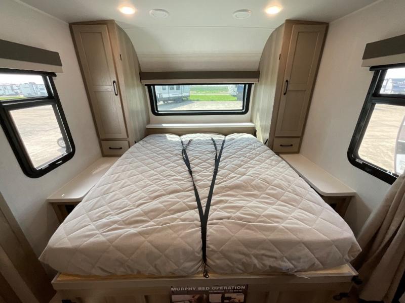 Finally, a lightweight travel trailer with double-size bunks for the kids or your guests! You'll find the versatile Murphy bed up front will be super convenient when you need more space to move around, and the 72" sofa will provide comfy seating space when the bed is put up. This model also includes a U-shaped dinette slide perfect to dine around, play games, and sleep additional guests. A 32" TV in the main living area will allow you to watch your favorite shows in the evenings, or you may just find yourselves outdoors under the 18' power awning with LED lights. And check out the pass-through storage, plus additional exterior storage for your hiking gear!