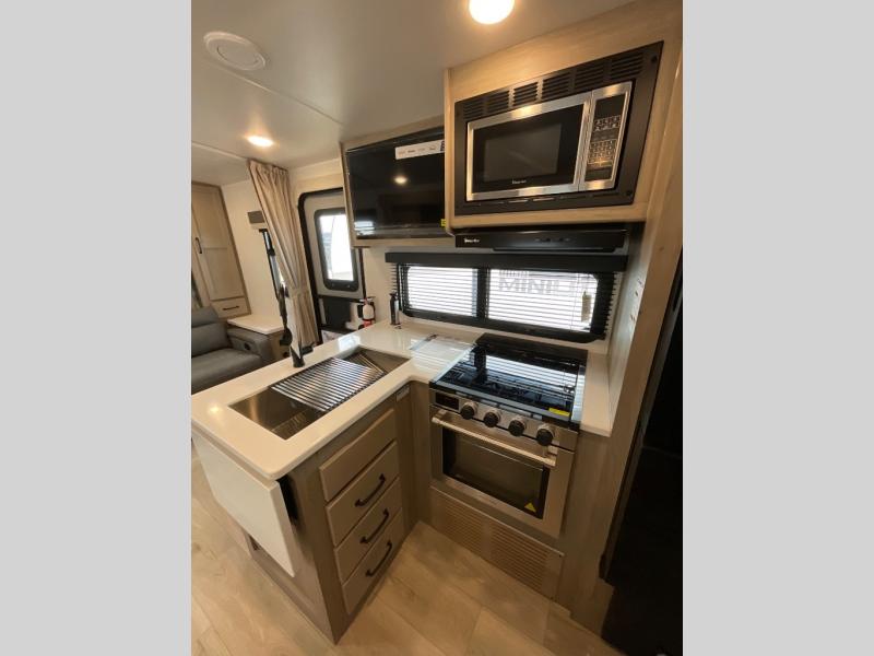 Each Rockwood Mini Lite travel trailer by Forest River is constructed with a fully laminated one-piece walkable roof, sleek frameless windows, and a six-sided full aluminum frame for strength and durability. The 12V thermostatically controlled heated tanks, plus radiant foil in the underbelly and slide out floors will allow you to camp well into the colder months, and the 200W roof solar panel will be perfect for a little off-gridding. Each model includes solid surface kitchen countertops, solid wood cabinet doors, night roller shades, plus many more interior features. Having an AIR 360+ omnidirectional antenna with WiFi prep on board gives you the option to get some work done if it's needed, and the power tongue jack provides hassle-free set up, so you can enjoy more time relaxing!