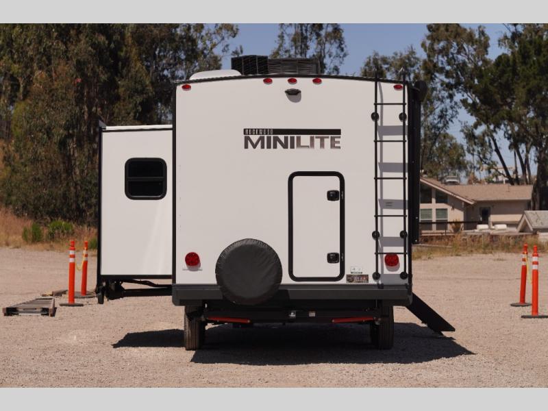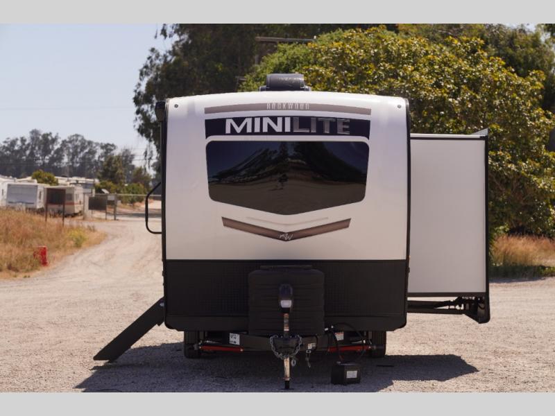Each Rockwood Mini Lite travel trailer by Forest River is constructed with a fully laminated one-piece walkable roof, sleek frameless windows, and a six-sided full aluminum frame for strength and durability. The 12V thermostatically controlled heated tanks, plus radiant foil in the underbelly and slide out floors will allow you to camp well into the colder months, and the 200W roof solar panel will be perfect for a little off-gridding. Each model includes solid surface kitchen countertops, solid wood cabinet doors, night roller shades, plus many more interior features. Having an AIR 360+ omnidirectional antenna with WiFi prep on board gives you the option to get some work done if it's needed, and the power tongue jack provides hassle-free set up, so you can enjoy more time relaxing!