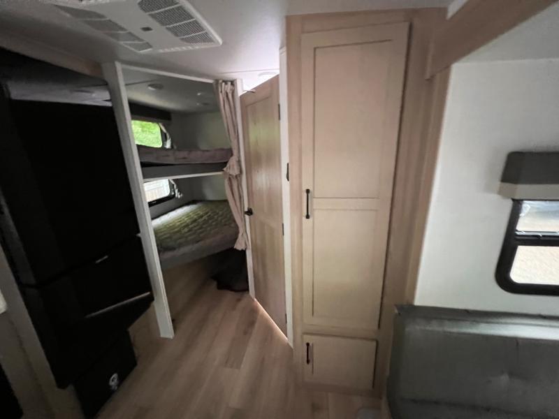 What I liked most: After a lot of searching, we finally found a trailer that "checked all of the boxes". Bunk house, lots of kitchen space (including outside!), a bathroom that larger than a coffin, and a huge awning. The bed is very comfortable...we've even used the heated mattress on a cold Wisconsin morning. All of this, and still under 5500 lbs. When you're inside you can't imagine that it's an easy to tow less than 26 feet long!