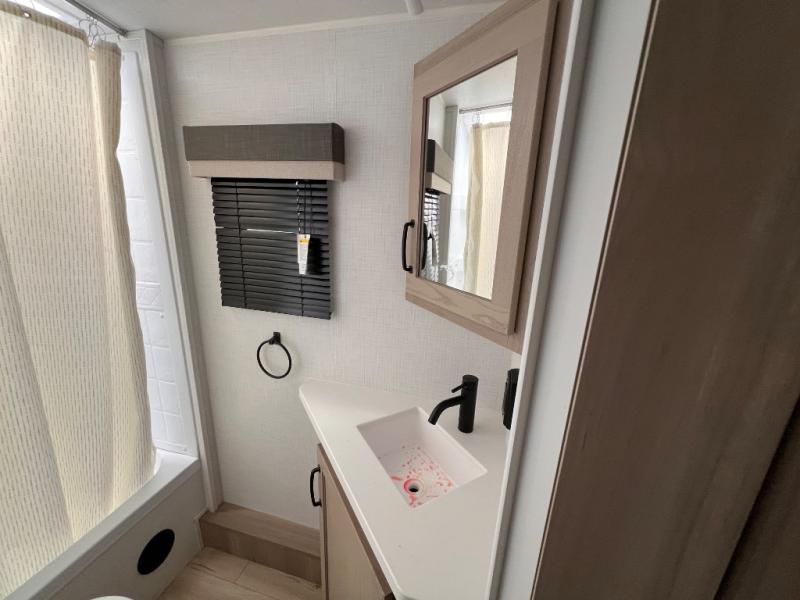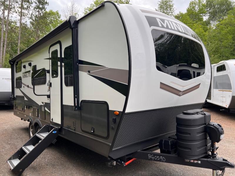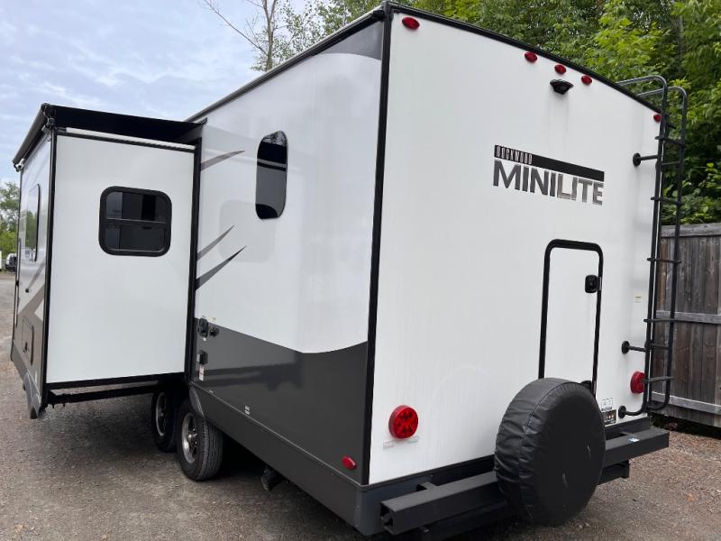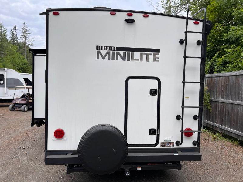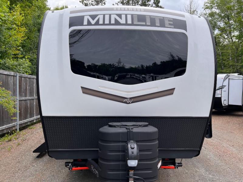 Each Rockwood Mini Lite travel trailer by Forest River is constructed with a fully laminated one-piece walkable roof, sleek frameless windows, and a six-sided full aluminum frame for strength and durability. The 12V thermostatically controlled heated tanks, plus radiant foil in the underbelly and slide out floors will allow you to camp well into the colder months, and the 200W roof solar panel will be perfect for a little off-gridding. Each model includes solid surface kitchen countertops, solid wood cabinet doors, night roller shades, plus many more interior features. Having an AIR 360+ omnidirectional antenna with WiFi prep on board gives you the option to get some work done if it's needed, and the power tongue jack provides hassle-free set up, so you can enjoy more time relaxing!