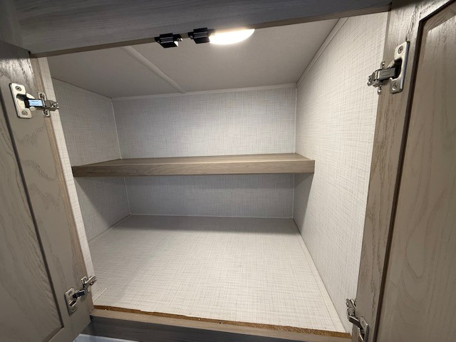 With two slide-outs, this floorplan offers a surprising amount of open living space and excellent storage options, including dual pantries, a wardrobe slide in the bedroom, and a drop-frame pass-through compartment for bulky camping gear.