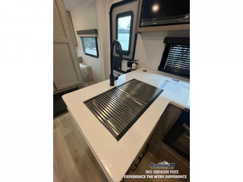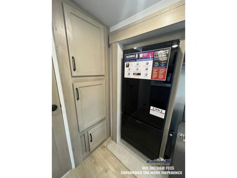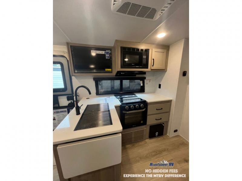 Each Rockwood Mini Lite travel trailer by Forest River is constructed with a fully laminated one-piece walkable roof, sleek frameless windows, and a six-sided full aluminum frame for strength and durability. The 12V thermostatically controlled heated tanks, plus radiant foil in the underbelly and slide out floors will allow you to camp well into the colder months, and the 200W roof solar panel will be perfect for a little off-gridding. Each model includes solid surface kitchen countertops, solid wood cabinet doors, night roller shades, plus many more interior features. Having an AIR 360+ omnidirectional antenna with WiFi prep on board gives you the option to get some work done if it's needed, and the power tongue jack provides hassle-free set up, so you can enjoy more time relaxing!