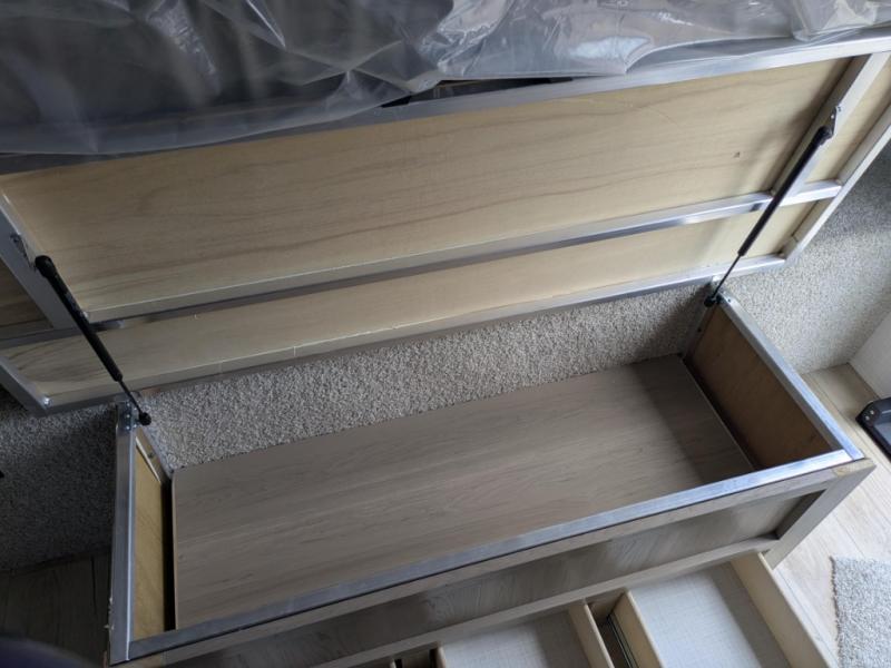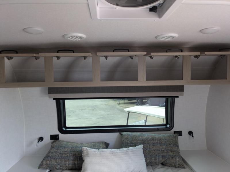 12V thermostatically controlled heated tanks with radiant foil insulation in the underbelly and slide floors for colder-weather camping