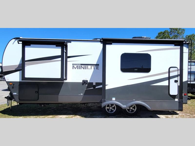 Each Rockwood Mini Lite travel trailer by Forest River is constructed with a fully laminated one-piece walkable roof, sleek frameless windows, and a six-sided full aluminum frame for strength and durability. The 12V thermostatically controlled heated tanks, plus radiant foil in the underbelly and slide out floors will allow you to camp well into the colder months, and the 200W roof solar panel will be perfect for a little off-gridding. Each model includes solid surface kitchen countertops, solid wood cabinet doors, night roller shades, plus many more interior features. Having an AIR 360+ omnidirectional antenna with WiFi prep on board gives you the option to get some work done if it's needed, and the power tongue jack provides hassle-free set up, so you can enjoy more time relaxing!