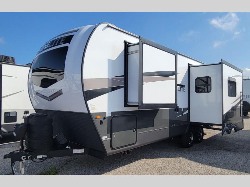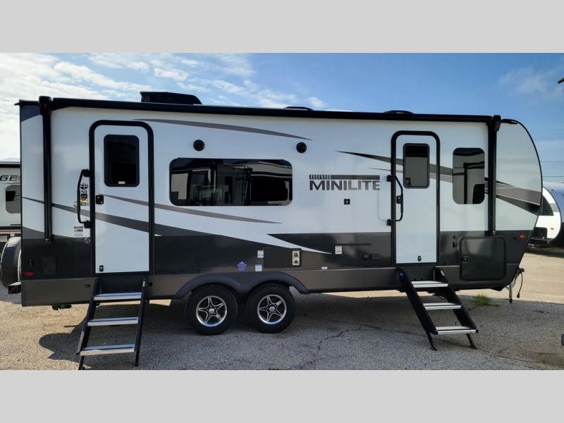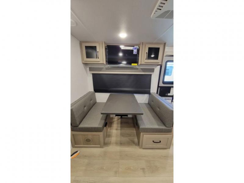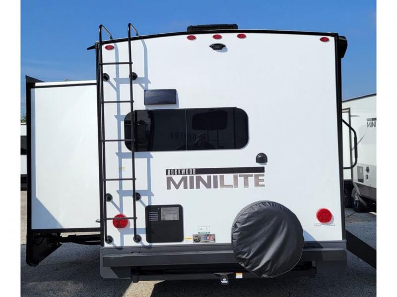 Each Rockwood Mini Lite travel trailer by Forest River is constructed with a fully laminated one-piece walkable roof, sleek frameless windows, and a six-sided full aluminum frame for strength and durability. The 12V thermostatically controlled heated tanks, plus radiant foil in the underbelly and slide out floors will allow you to camp well into the colder months, and the 200W roof solar panel will be perfect for a little off-gridding. Each model includes solid surface kitchen countertops, solid wood cabinet doors, night roller shades, plus many more interior features. Having an AIR 360+ omnidirectional antenna with WiFi prep on board gives you the option to get some work done if it's needed, and the power tongue jack provides hassle-free set up, so you can enjoy more time relaxing!