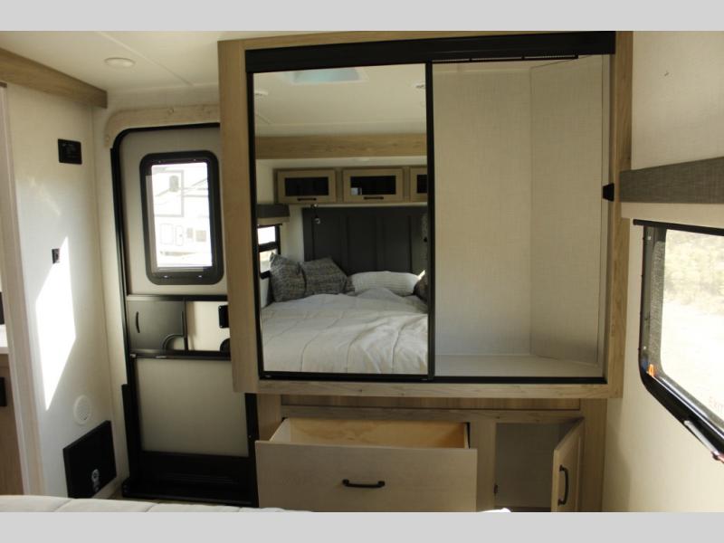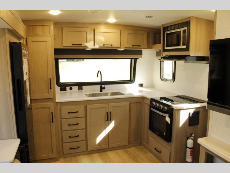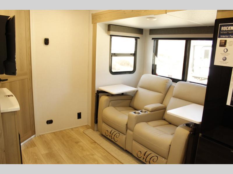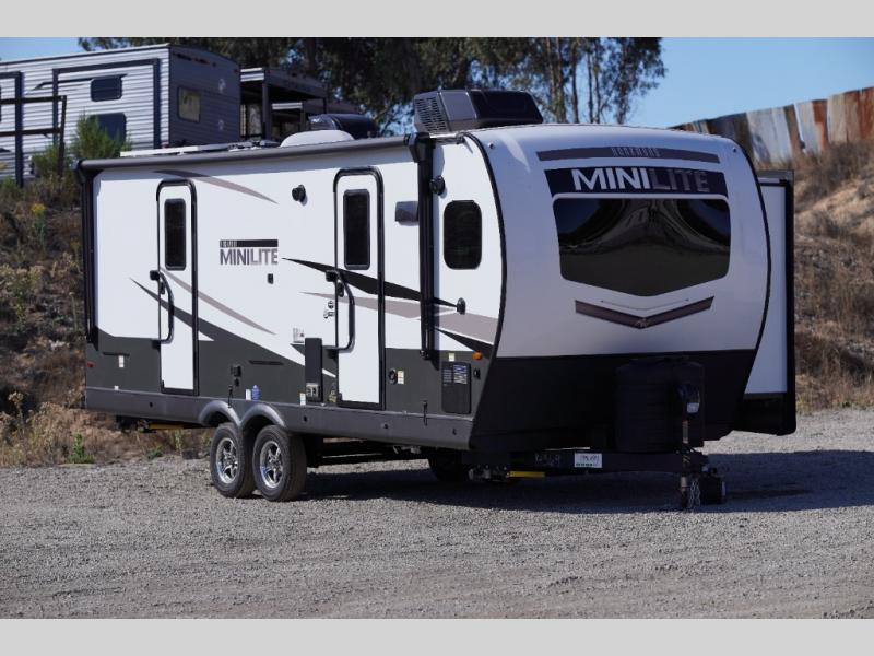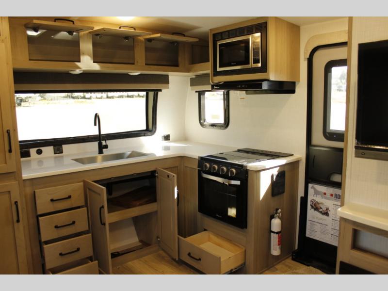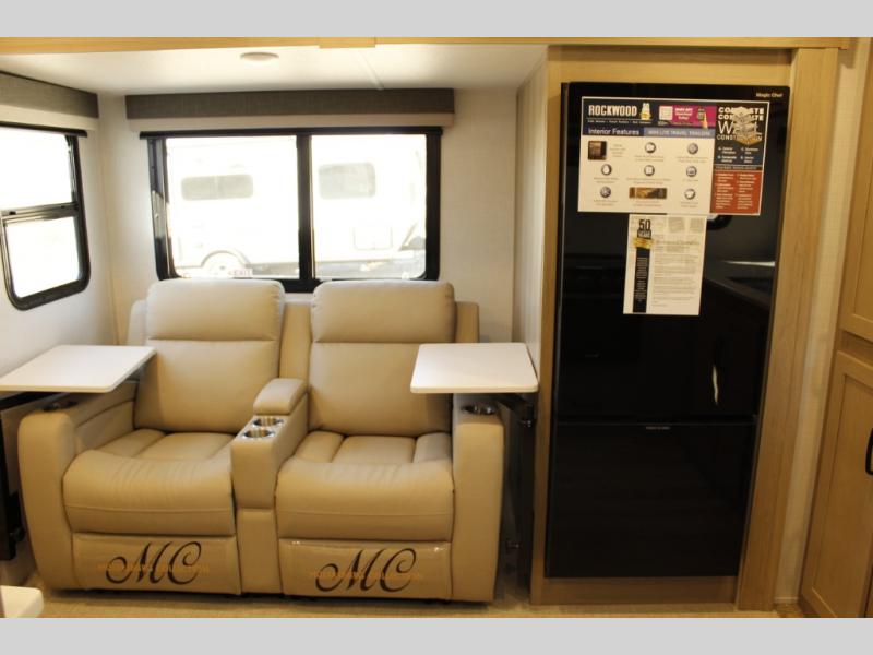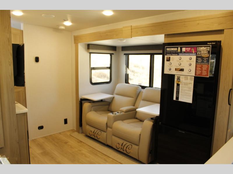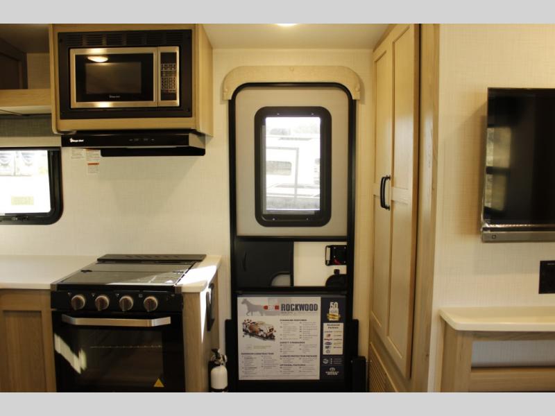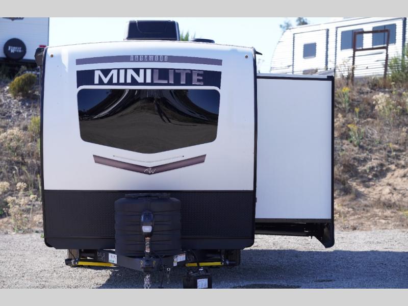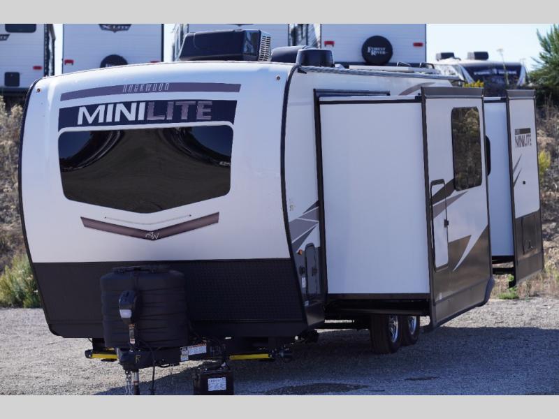 Each Rockwood Mini Lite travel trailer by Forest River is constructed with a fully laminated one-piece walkable roof, sleek frameless windows, and a six-sided full aluminum frame for strength and durability. The 12V thermostatically controlled heated tanks, plus radiant foil in the underbelly and slide out floors will allow you to camp well into the colder months, and the 200W roof solar panel will be perfect for a little off-gridding. Each model includes solid surface kitchen countertops, solid wood cabinet doors, night roller shades, plus many more interior features. Having an AIR 360+ omnidirectional antenna with WiFi prep on board gives you the option to get some work done if it's needed, and the power tongue jack provides hassle-free set up, so you can enjoy more time relaxing!