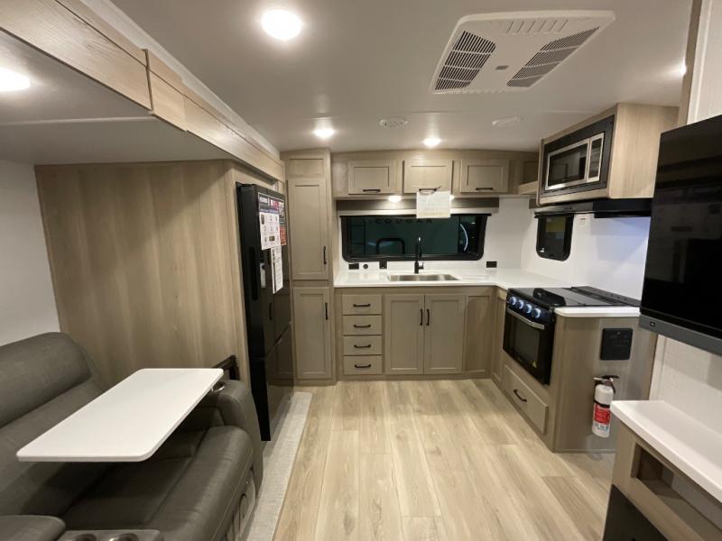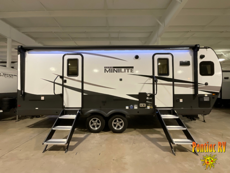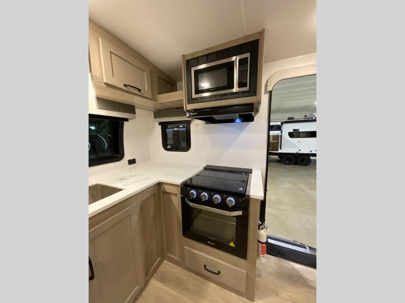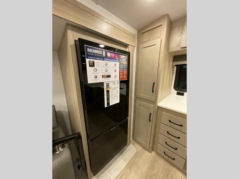 Each Rockwood Mini Lite travel trailer by Forest River is constructed with a fully laminated one-piece walkable roof, sleek frameless windows, and a six-sided full aluminum frame for strength and durability. The 12V thermostatically controlled heated tanks, plus radiant foil in the underbelly and slide out floors will allow you to camp well into the colder months, and the 200W roof solar panel will be perfect for a little off-gridding. Each model includes solid surface kitchen countertops, solid wood cabinet doors, night roller shades, plus many more interior features. Having an AIR 360+ omnidirectional antenna with WiFi prep on board gives you the option to get some work done if it's needed, and the power tongue jack provides hassle-free set up, so you can enjoy more time relaxing!