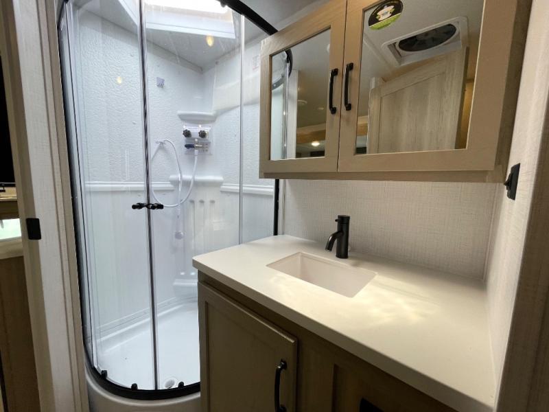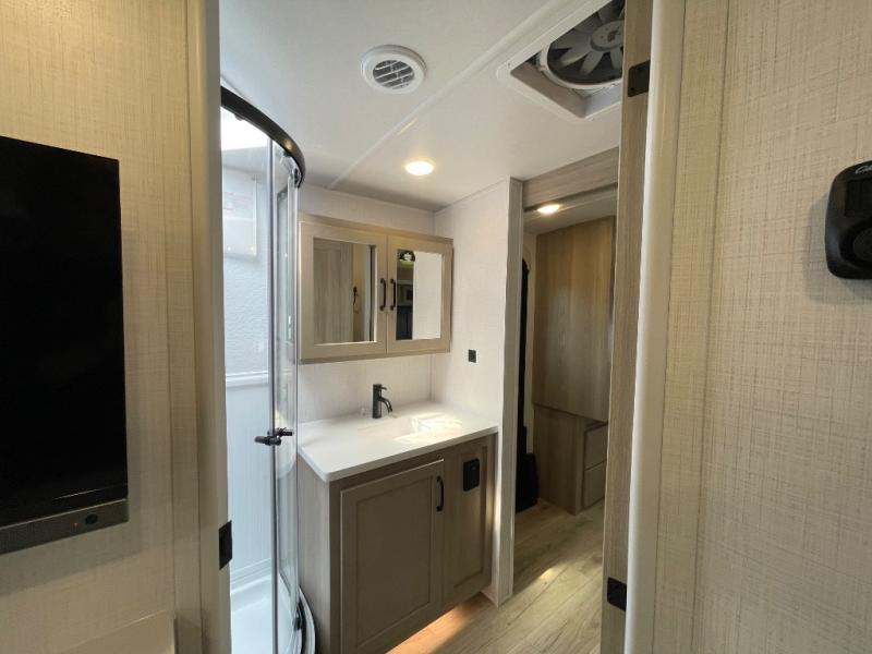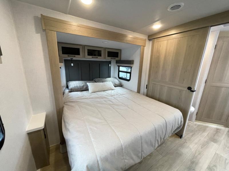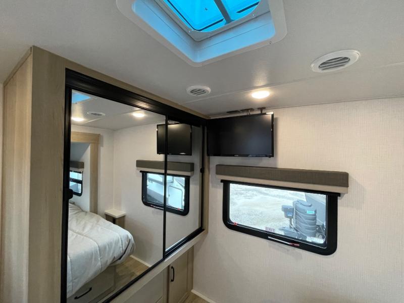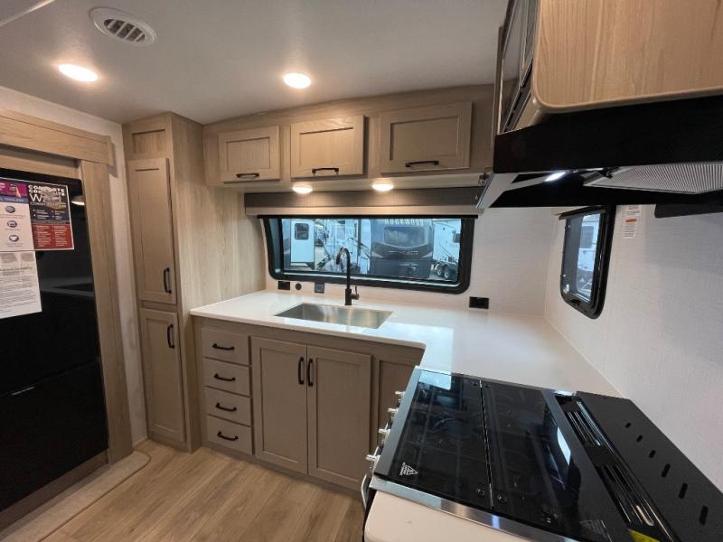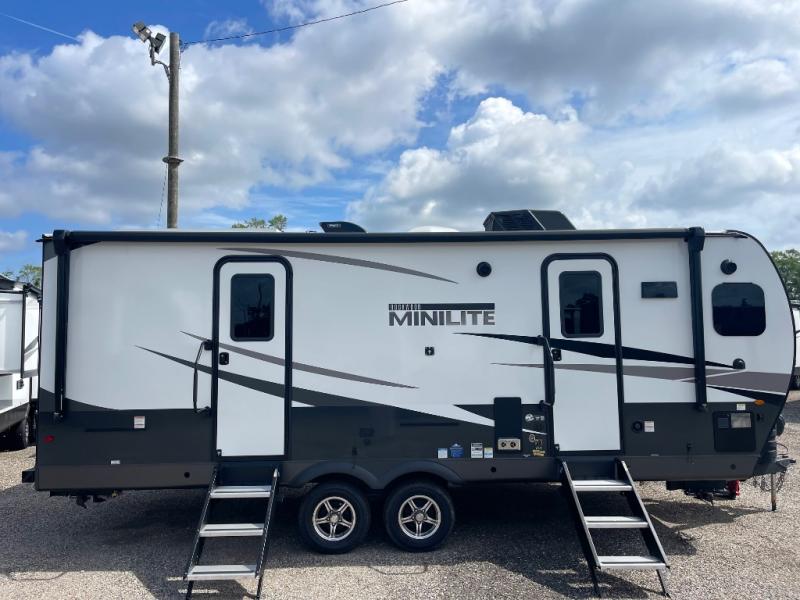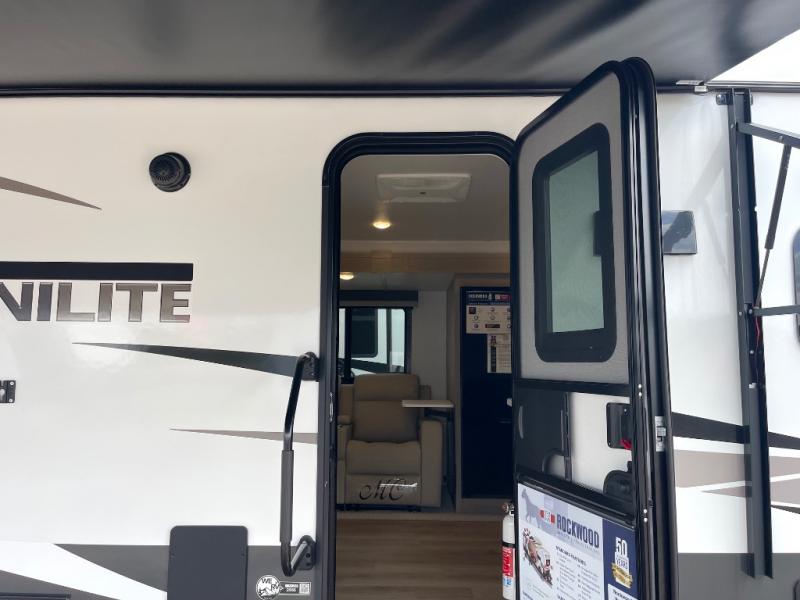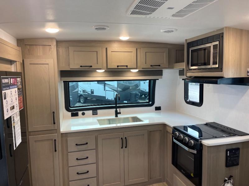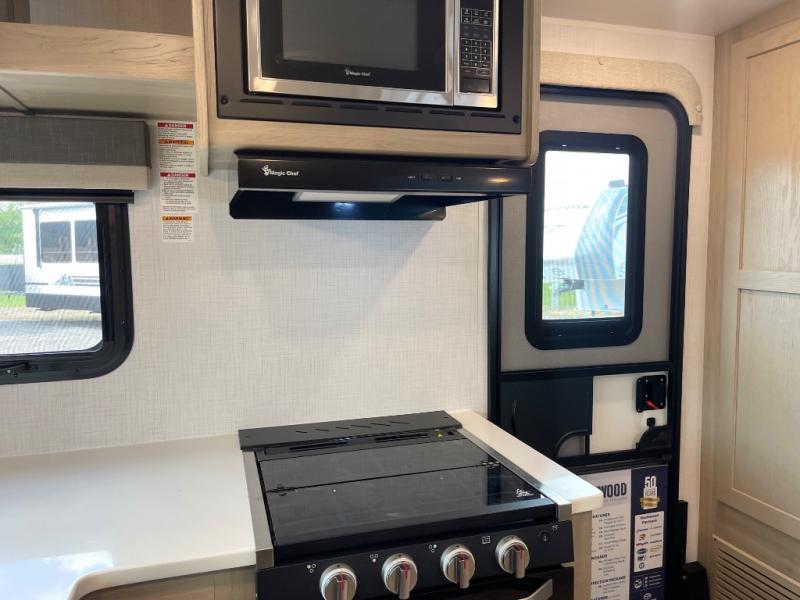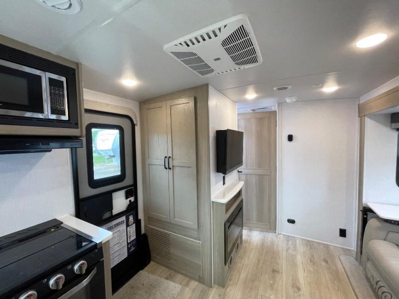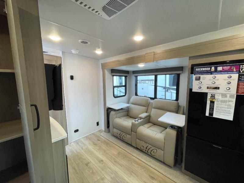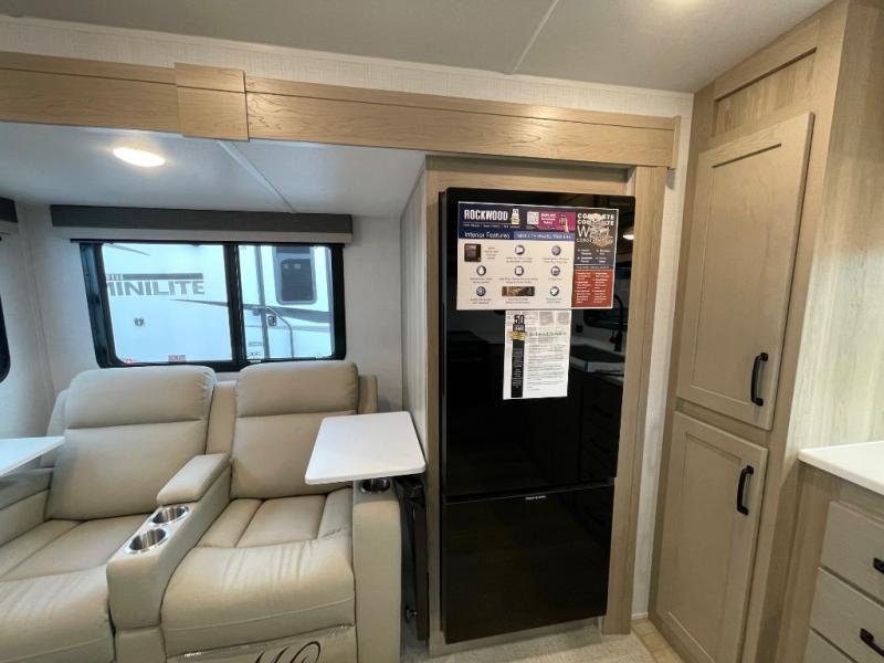 Each Rockwood Mini Lite travel trailer by Forest River is constructed with a fully laminated one-piece walkable roof, sleek frameless windows, and a six-sided full aluminum frame for strength and durability. The 12V thermostatically controlled heated tanks, plus radiant foil in the underbelly and slide out floors will allow you to camp well into the colder months, and the 200W roof solar panel will be perfect for a little off-gridding. Each model includes solid surface kitchen countertops, solid wood cabinet doors, night roller shades, plus many more interior features. Having an AIR 360+ omnidirectional antenna with WiFi prep on board gives you the option to get some work done if it's needed, and the power tongue jack provides hassle-free set up, so you can enjoy more time relaxing!