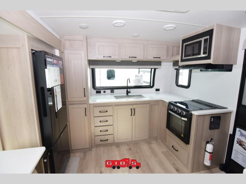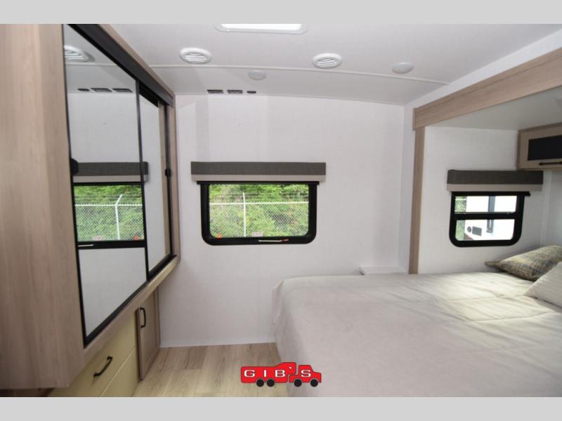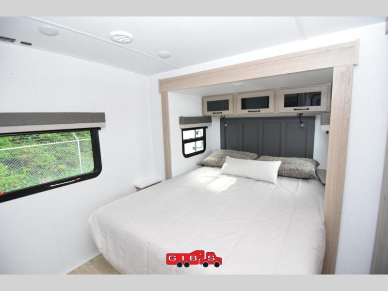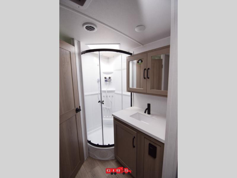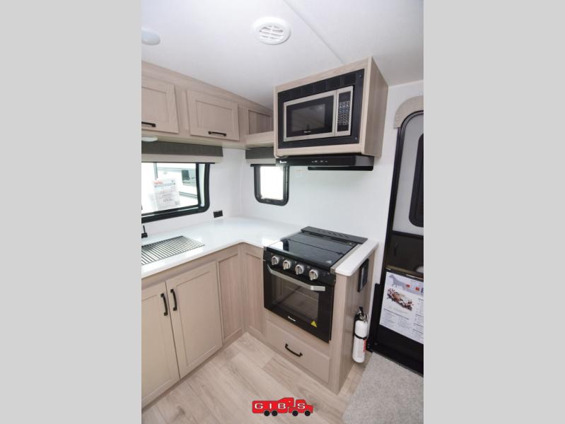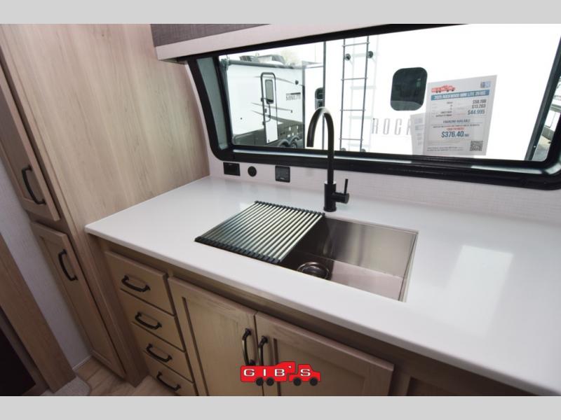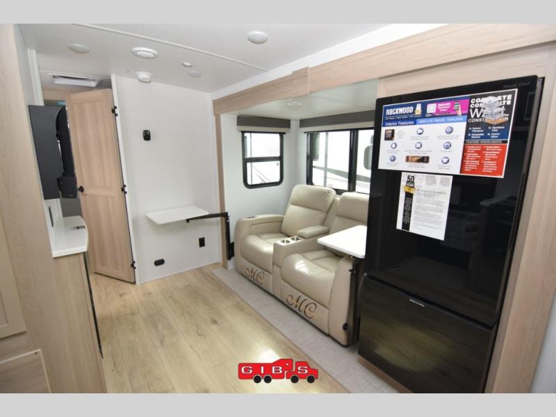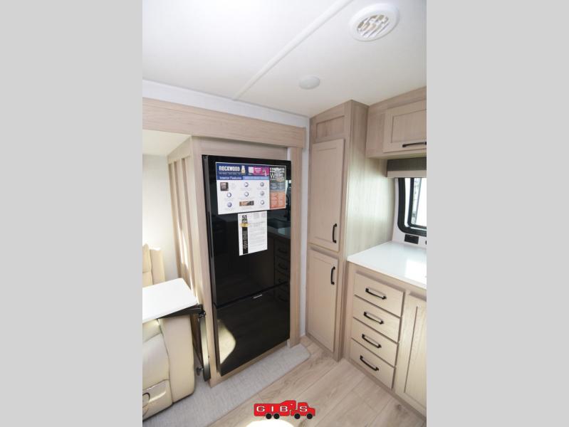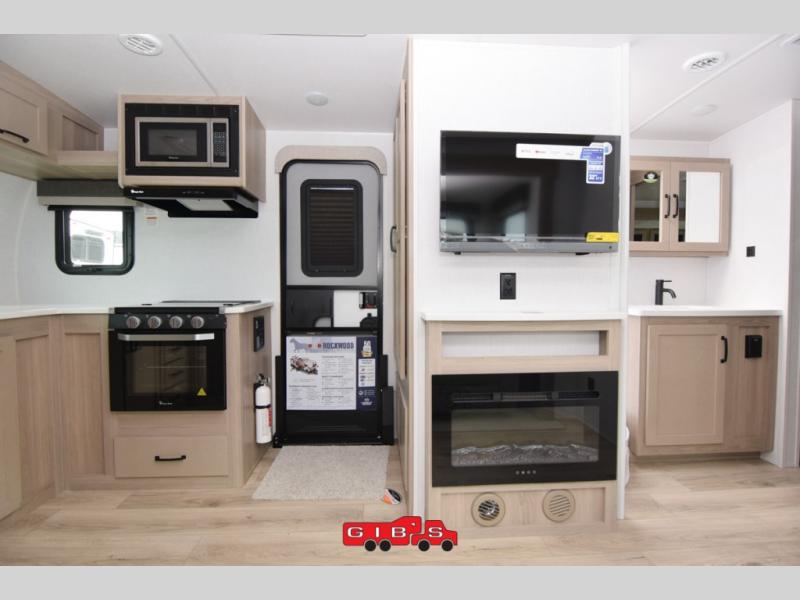 Each Rockwood Mini Lite travel trailer by Forest River is constructed with a fully laminated one-piece walkable roof, sleek frameless windows, and a six-sided full aluminum frame for strength and durability. The 12V thermostatically controlled heated tanks, plus radiant foil in the underbelly and slide out floors will allow you to camp well into the colder months, and the 200W roof solar panel will be perfect for a little off-gridding. Each model includes solid surface kitchen countertops, solid wood cabinet doors, night roller shades, plus many more interior features. Having an AIR 360+ omnidirectional antenna with WiFi prep on board gives you the option to get some work done if it's needed, and the power tongue jack provides hassle-free set up, so you can enjoy more time relaxing!