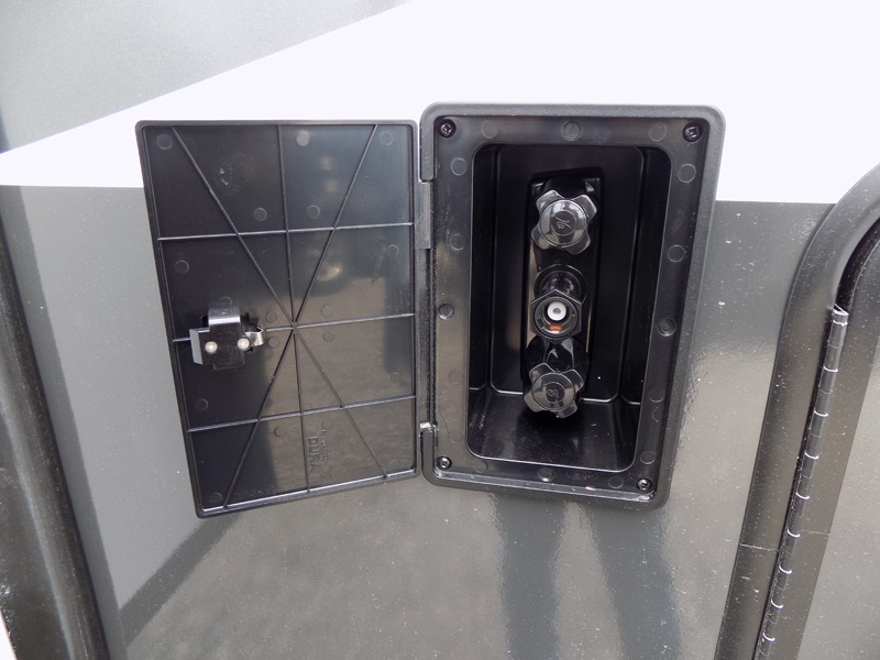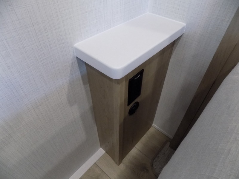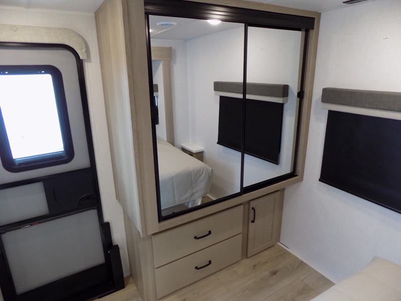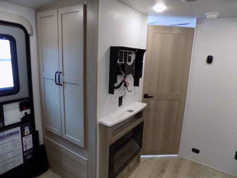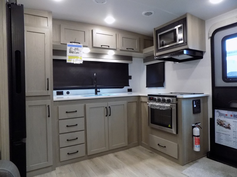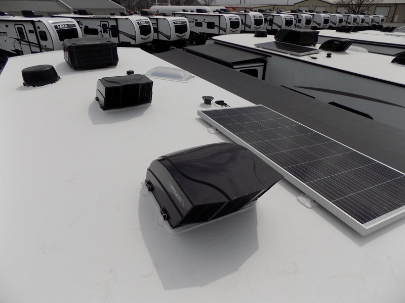 White/Alloy 2 Tone Fiberglass Exterior, High Gloss Front Cap, Automotive Front Windshield, Power Tongue Jack, Stabilizer Jacks, Azdel Structural Exterior Walls, Vacuum Laminated Roof, Aluminum Cage Construction, Frameless Windows, Slam Latch Baggage Doorsw/Magnetic Catch, 15,000 BTU A/C, Enclosed Underbelly w/Thermostatically Controlled Heated Holding Tanks, Pre-wire for Back-up Camera, Power Awning, 200W Solar Panel w/Inverter & Addtional Solar Side Port, Air 360+ Omnidirectional Antenna w/Wi-Fi Prep, One Control APP Monitor Panel, Smart TV, 12V Smart Entertainment TV w/Stereo, 12V Refrigerator, Fireplace (where available), 6 gal Quick Recovery Auto Ignite Gas/Electric Waterheater, DEXTER Torflex Torsion Axles, GOODYEAR Endurance Tires w/TPMS Tire Pressure Monitoring System, Roller Shades, MorRyde Strut Assist Steps (Strut N/A 2-step), Key Alike Doors, Undermount Sink w/High Rise Faucet, Solid Surface Countertops, Hidden Hinges Cabinet Doors, Rear Ladder, Black Tank Flush, Water Saver Shower Miser, Exterior Hot/Cold Water Port, Gas Griddle, 2" Accessory Hitch, Spare Tire Carrier & Cover