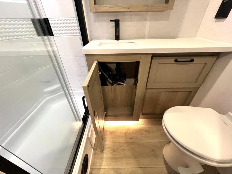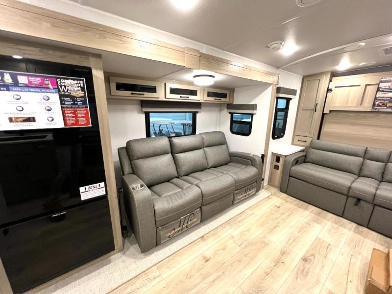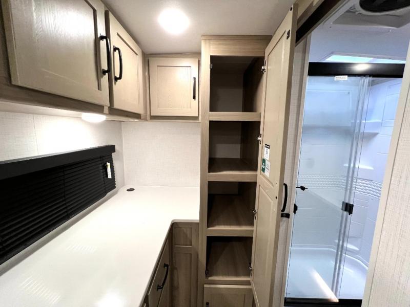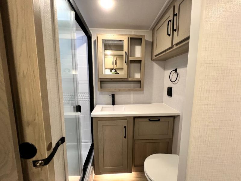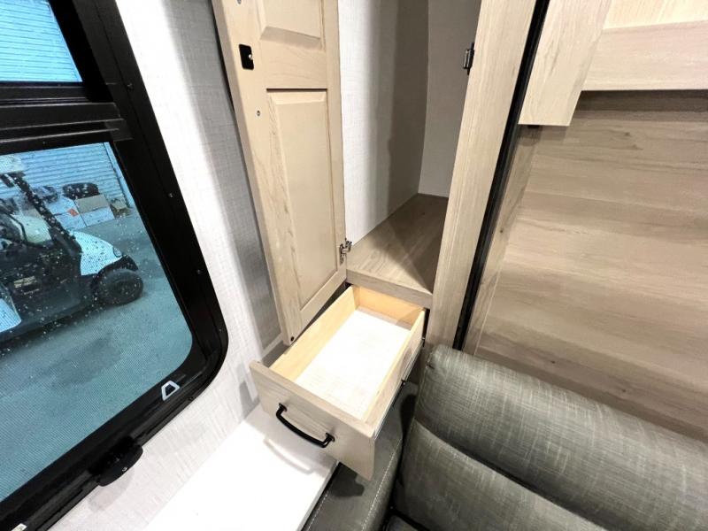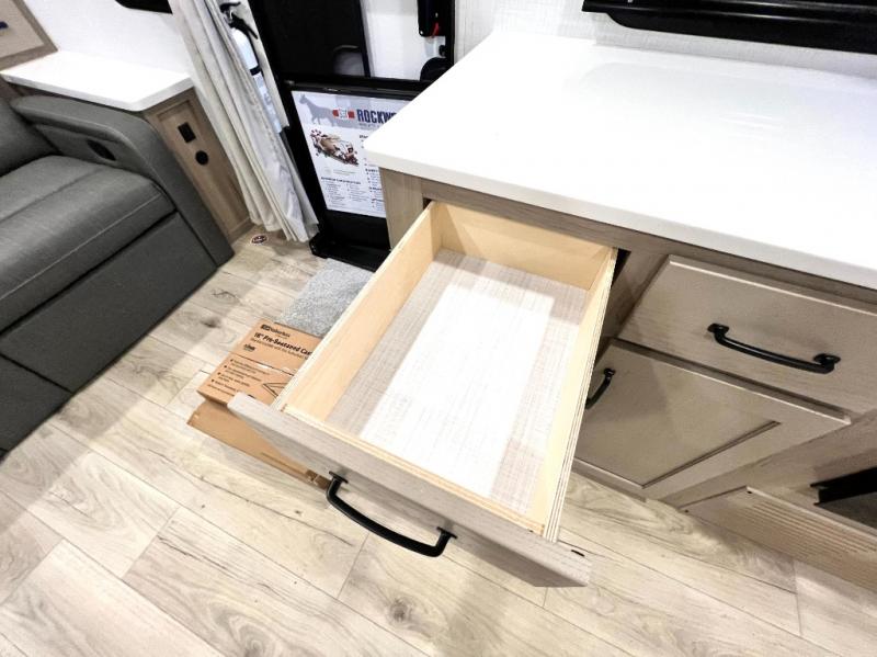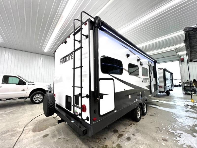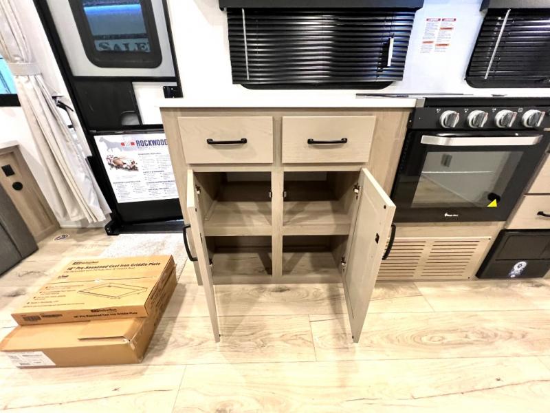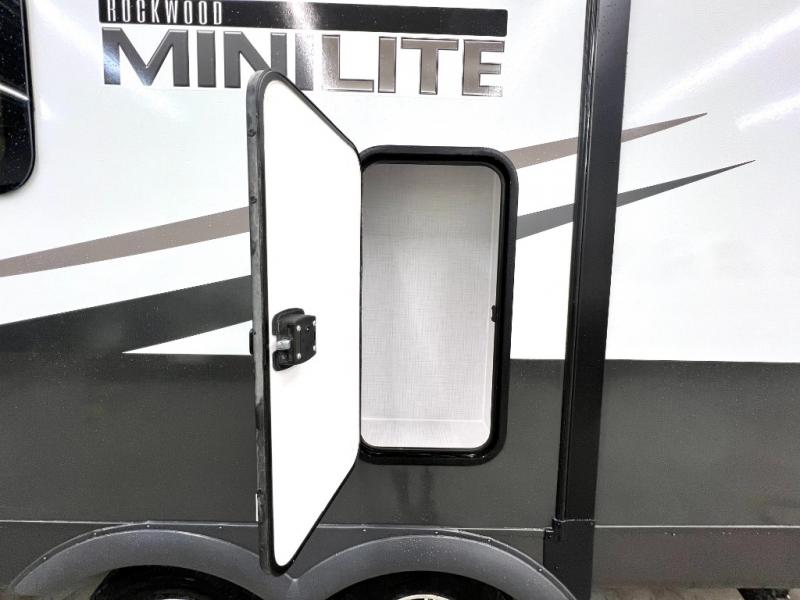 Each Rockwood Mini Lite travel trailer by Forest River is constructed with a fully laminated one-piece walkable roof, sleek frameless windows, and a six-sided full aluminum frame for strength and durability. The 12V thermostatically controlled heated tanks, plus radiant foil in the underbelly and slide out floors will allow you to camp well into the colder months, and the 200W roof solar panel will be perfect for a little off-gridding. Each model includes solid surface kitchen countertops, solid wood cabinet doors, night roller shades, plus many more interior features. Having an AIR 360+ omnidirectional antenna with WiFi prep on board gives you the option to get some work done if it's needed, and the power tongue jack provides hassle-free set up, so you can enjoy more time relaxing!