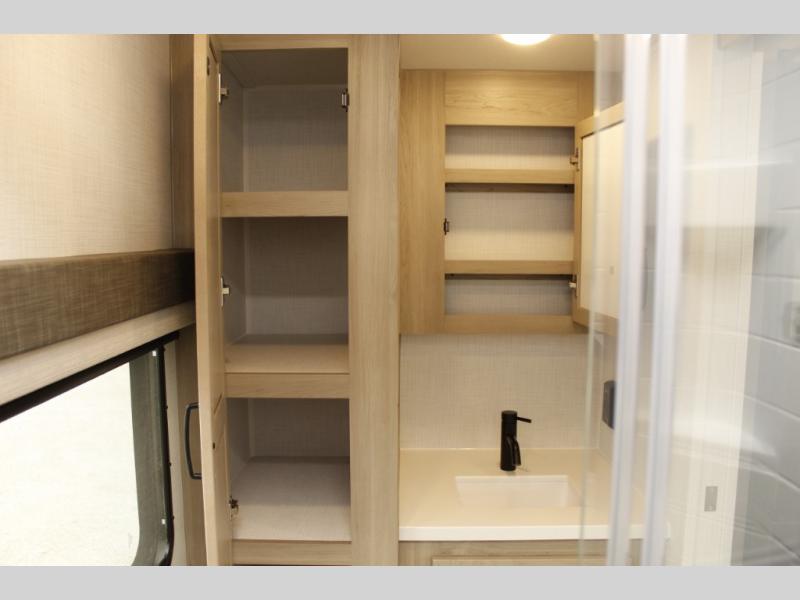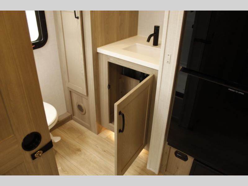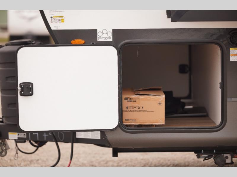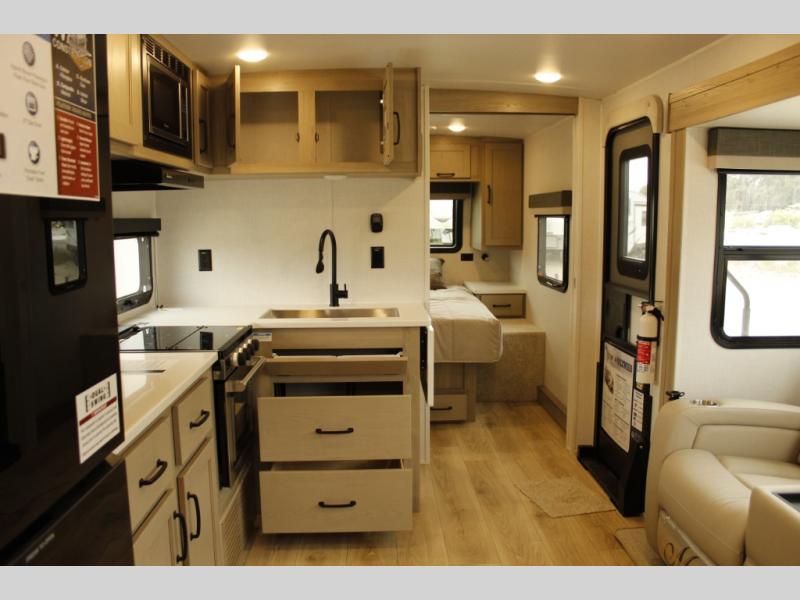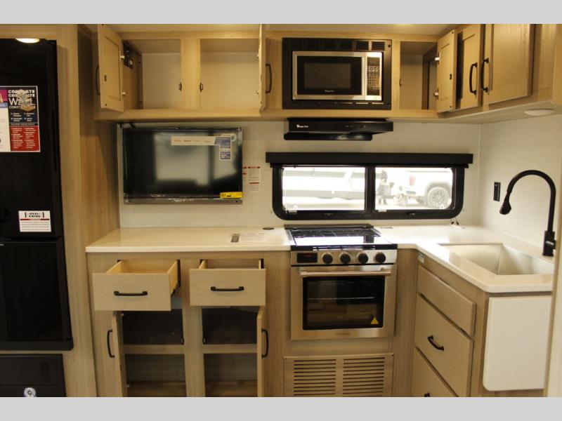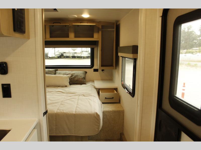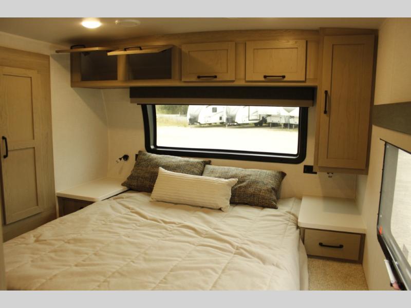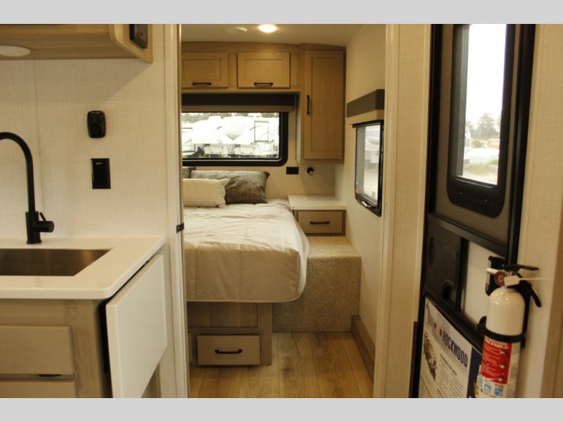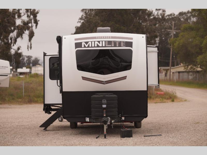 Each Rockwood Mini Lite travel trailer by Forest River is constructed with a fully laminated one-piece walkable roof, sleek frameless windows, and a six-sided full aluminum frame for strength and durability. The 12V thermostatically controlled heated tanks, plus radiant foil in the underbelly and slide out floors will allow you to camp well into the colder months, and the 200W roof solar panel will be perfect for a little off-gridding. Each model includes solid surface kitchen countertops, solid wood cabinet doors, night roller shades, plus many more interior features. Having an AIR 360+ omnidirectional antenna with WiFi prep on board gives you the option to get some work done if it's needed, and the power tongue jack provides hassle-free set up, so you can enjoy more time relaxing!