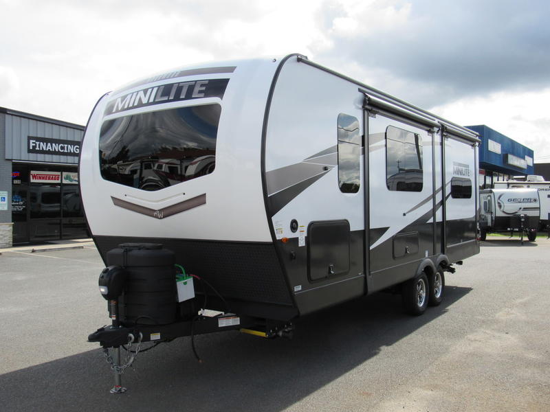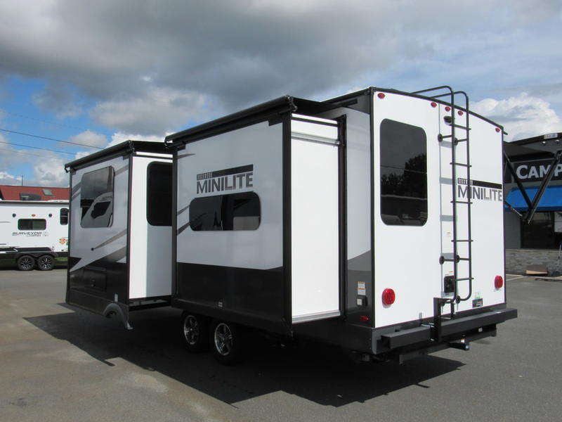 Each Rockwood Mini Lite travel trailer by Forest River is constructed with a fully laminated one-piece walkable roof, sleek frameless windows, and a six-sided full aluminum frame for strength and durability. The 12V thermostatically controlled heated tanks, plus radiant foil in the underbelly and slide out floors will allow you to camp well into the colder months, and the 200W roof solar panel will be perfect for a little off-gridding. Each model includes solid surface kitchen countertops, solid wood cabinet doors, night roller shades, plus many more interior features. Having an AIR 360+ omnidirectional antenna with WiFi prep on board gives you the option to get some work done if it's needed, and the power tongue jack provides hassle-free set up, so you can enjoy more time relaxing!