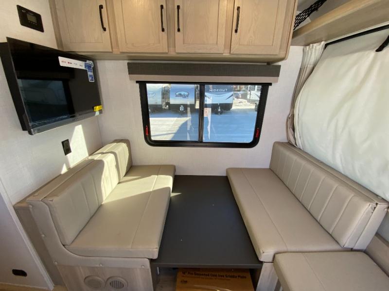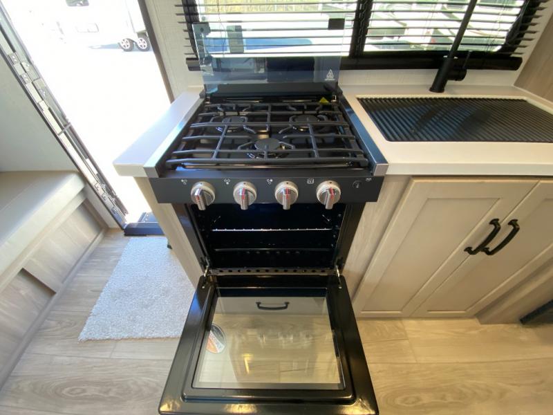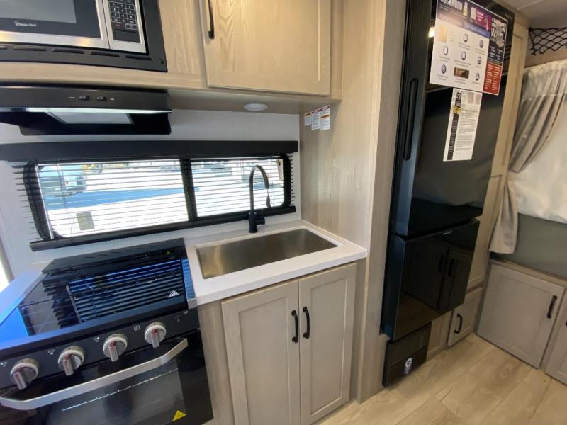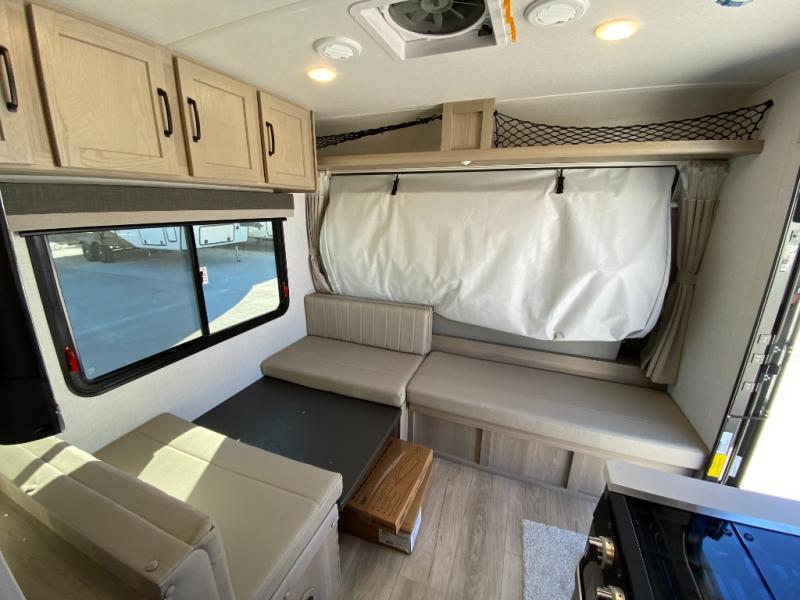 This expandable travel trailer is perfect for camping trips to your favorite park. You will find two queen tent end beds for cozy sleeping space plus a 39" booth dinette that will double as dining and additional sleeping space. There is also an entryway bench so you can easily pull your boots on for hiking. The three burner gas cooktop and microwave oven will let you make meals each day, and the 12V refrigerator will keep your food fresh. There is even a pantry/wardrobe that can store dry goods and clothes. Head outside to find Solid Step entry steps, an exterior griddle, a 12' power awning with LED lights and exterior storage!