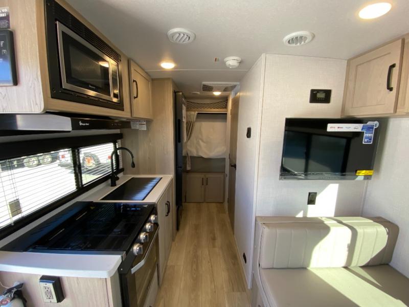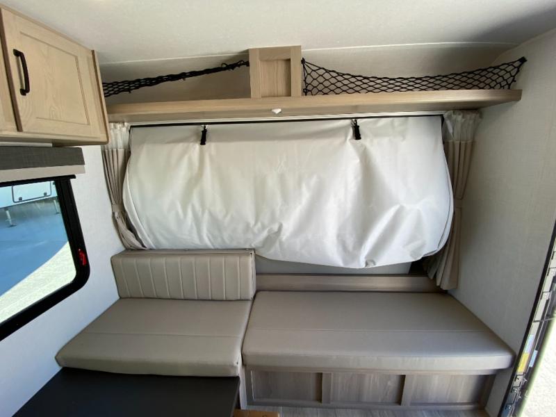 With any Rockwood Roo expandable travel trailer by Forest River you will enjoy smooth towing thanks to the torsion axle, Rubber-Ryde suspension, the easy lube axles and Nev-R-Adjust brakes. The key-Alike locks provide easy access in and out of your trailer, and each model includes prep for a Air 360+Omnidirectional antenna with WiFi for all your connection needs. Each model is constructed with a vacuum laminated one-piece roof and walls, an enclosed underbelly, and tinted framed windows for a more sleek look. You will enjoy many interior comforts, including hardwood cabinet doors and drawer fronts, night roller shades, a bunk/fan light combo with each bed, and much more!
