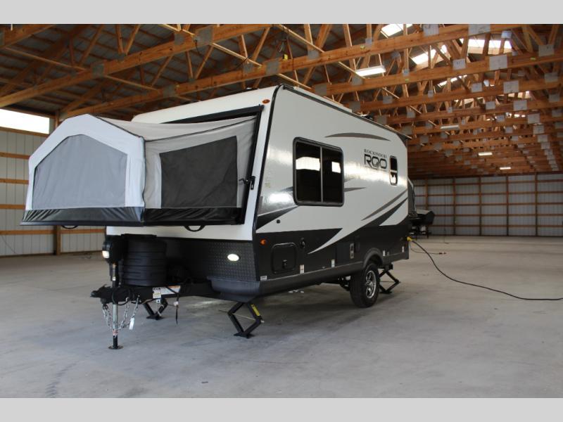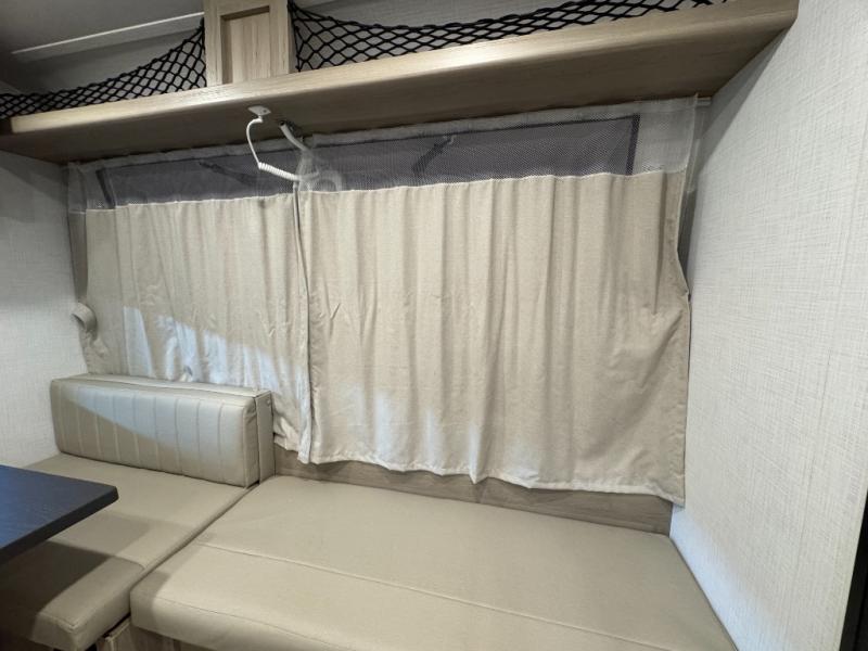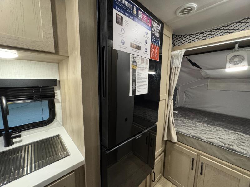 With any Rockwood Roo expandable travel trailer by Forest River you will enjoy smooth towing thanks to the torsion axle, Rubber-Ryde suspension, the easy lube axles and Nev-R-Adjust brakes. The key-Alike locks provide easy access in and out of your trailer, and each model includes prep for a Air 360+Omnidirectional antenna with WiFi for all your connection needs. Each model is constructed with a vacuum laminated one-piece roof and walls, an enclosed underbelly, and tinted framed windows for a more sleek look. You will enjoy many interior comforts, including hardwood cabinet doors and drawer fronts, night roller shades, a bunk/fan light combo with each bed, and much more!
